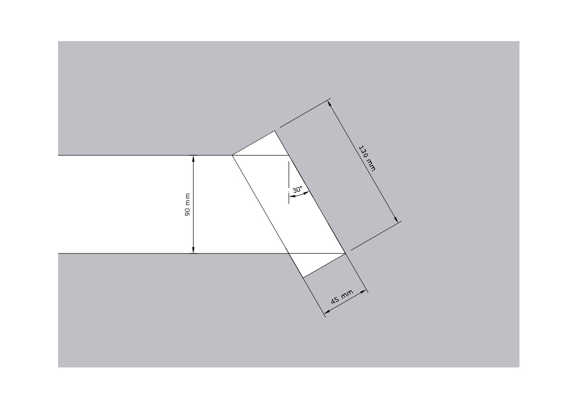 Och jag har ett problem. Min hjärna hänger inte riktigt med i hur jag skall kapa vertikalreglarna (45x90) som skall stå ytterst på bottenregelarna (45x90)? Bottenregelns kortsida är kapad i 30grader som på bilden.