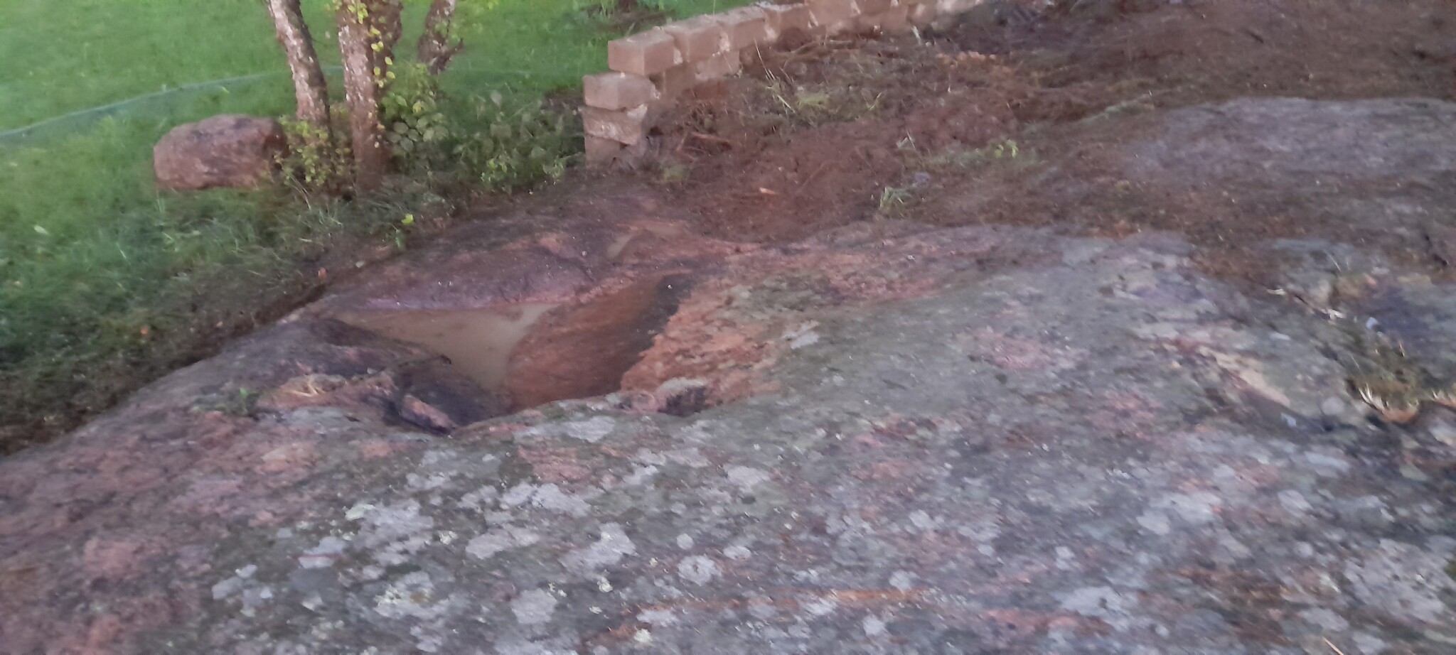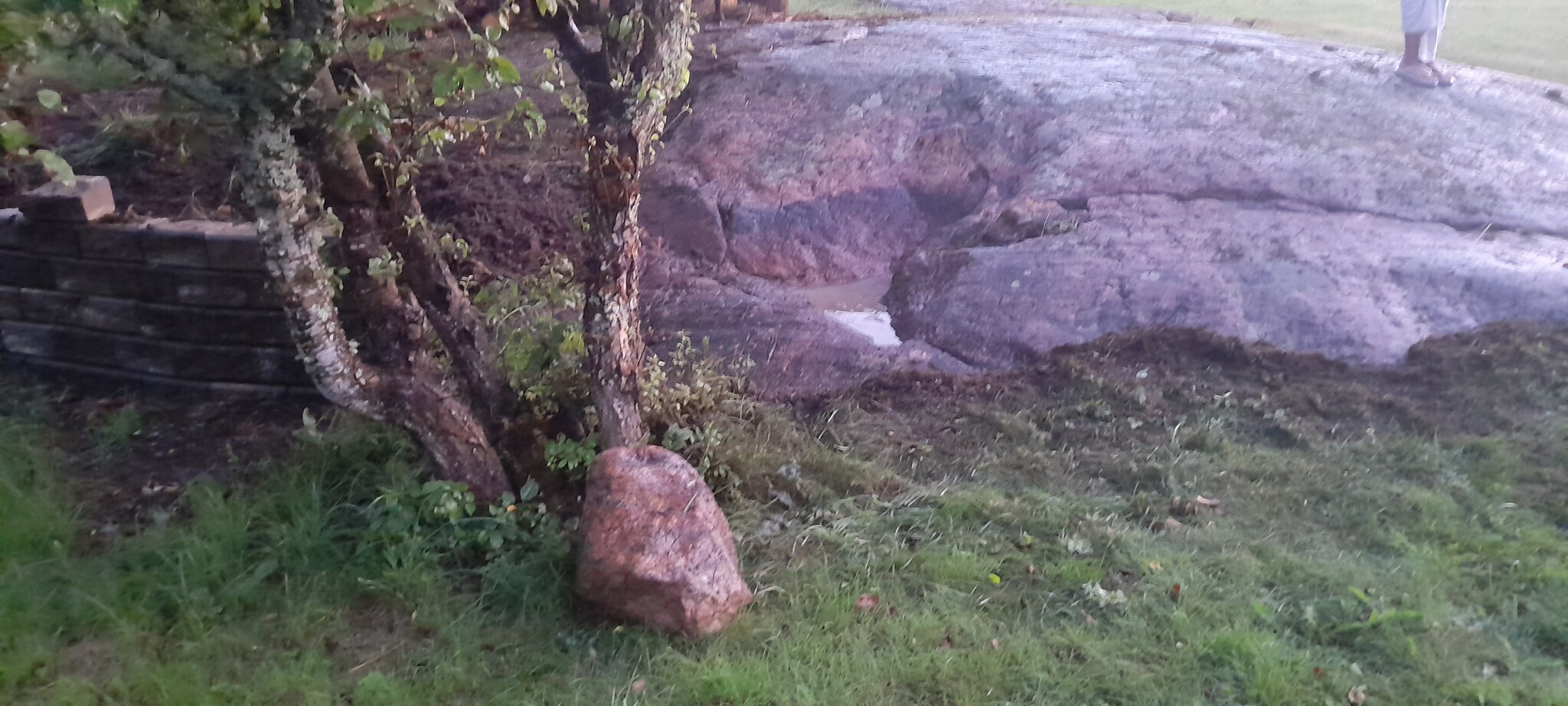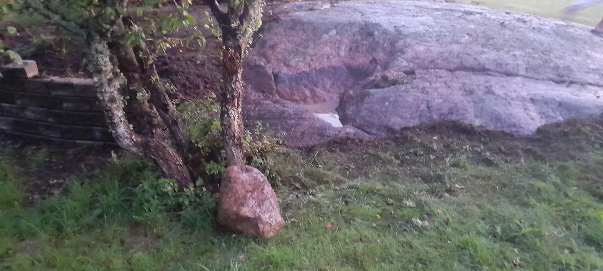 Som ni ser på bilderna finns det ett litet hål i bergslänten i vår trädgård. Vi vill gärna ha en mini-damm där. Frågan är: hur gör man det på enklast sätt ? Kan man lägga stora stenar och sedan placera en plastdamm i hålet ? Hur stora stenar behöver man då ?