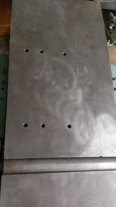 Denna skruvas sen i hål som man borrat upp och gängat i inmatningsbordet. Tror det är M12or det sitter med.