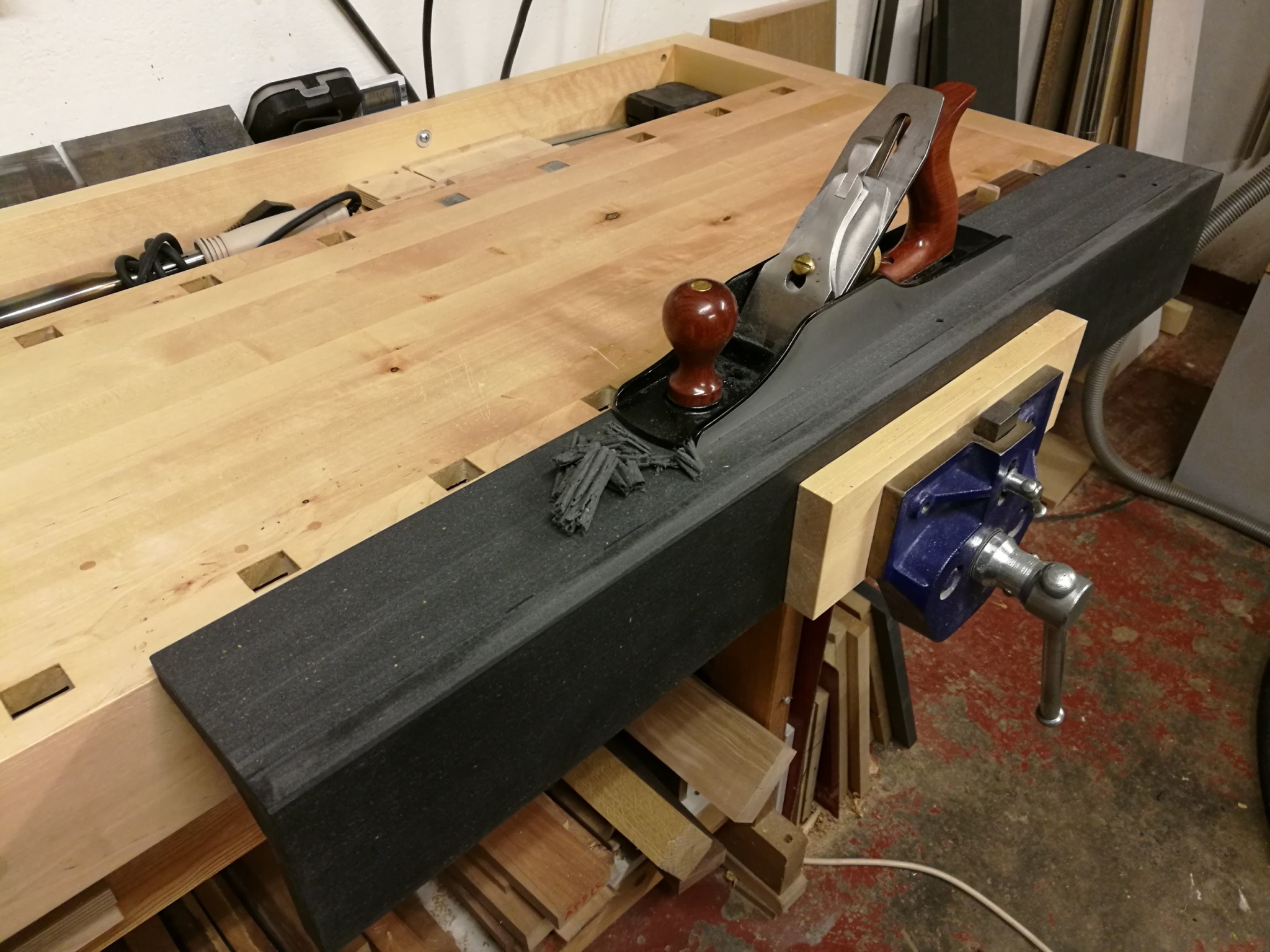 Jag handhyvlade in sista touchen för att få det helt vinkelrätt, valchromat ger fina hyvelspån.