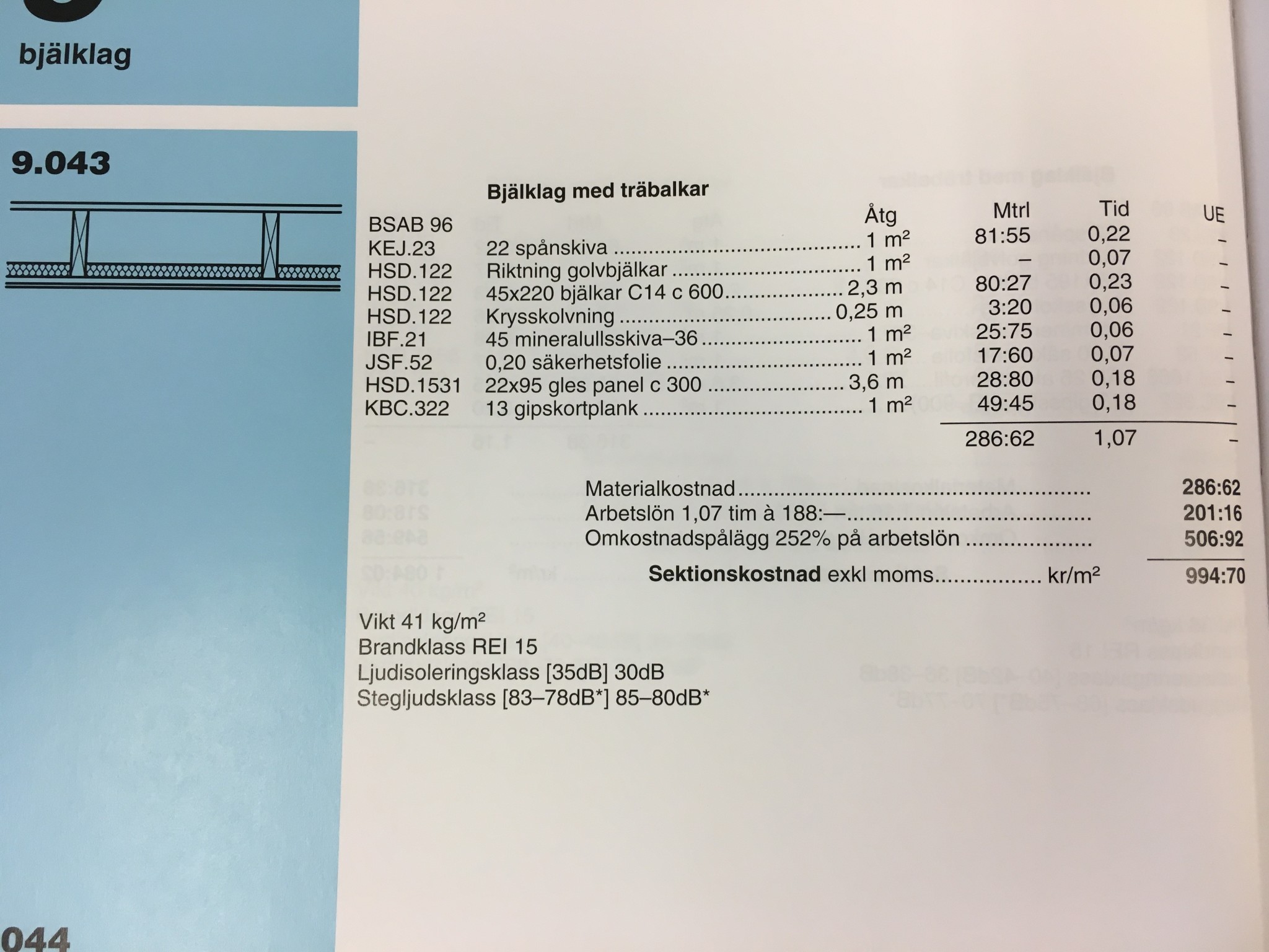 Nej, då tänker jag mig arbete och material för själva bjälklaget. I stort sett handlar det ju om X antal långa reglar med isolering i. Sedan tillkommer ju tak under, golv ovanför etc.S Seet skrev: