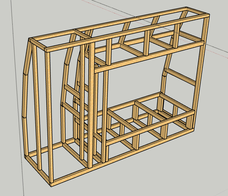 Bygga upp stommen i 45x70 reglar, som jag fäster i vägg och tak. För att inte förstöra golvet så tänker jag att reglarna ligger mot golvet med någon duk emellan för att minska gnissel.