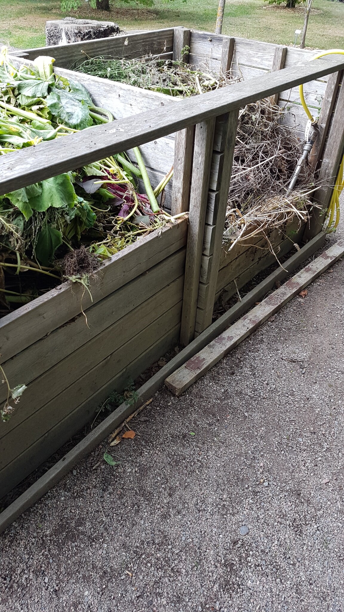 Min kompost består av 3 stora fack. Första facket samlar jag I hela sommaren. Nästa vår vänder jag komposten och flyttar till fack 2. Så forts sätter jag 2an läggs 3an , året därpå har perfekt kompostera i 3an. Detta rullar på hela tiden år efter år, jag har inget tak utan vattnar min kompost så den inte torkar ut.