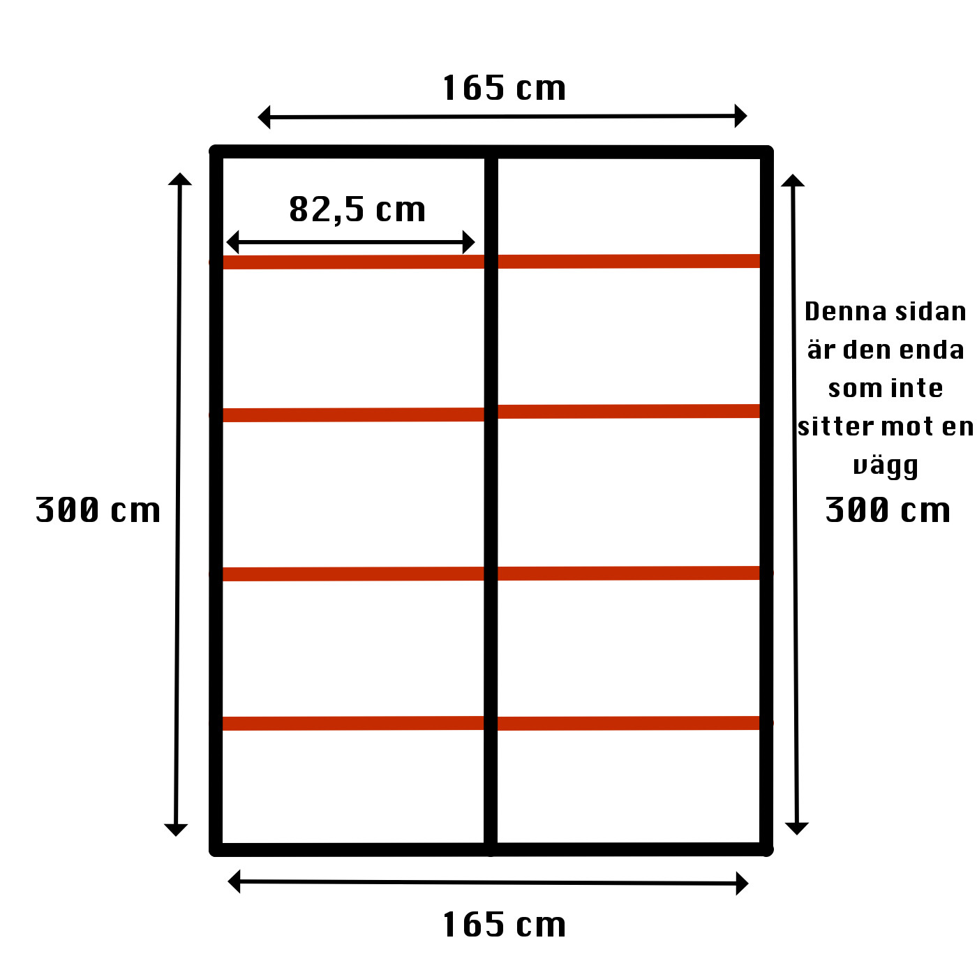 Ytan blir ju 300 x 165, så det blir en spännvidd på 300 över rummet på ena sidan av konstruktionen resterande sidor har vägganslutning. Alla 4 hörnen av plattformen kommer ha stöttor under sig i form av den regel/balk som jag väljer samt att 3 av sidorna kommer skruvas in i väggen.