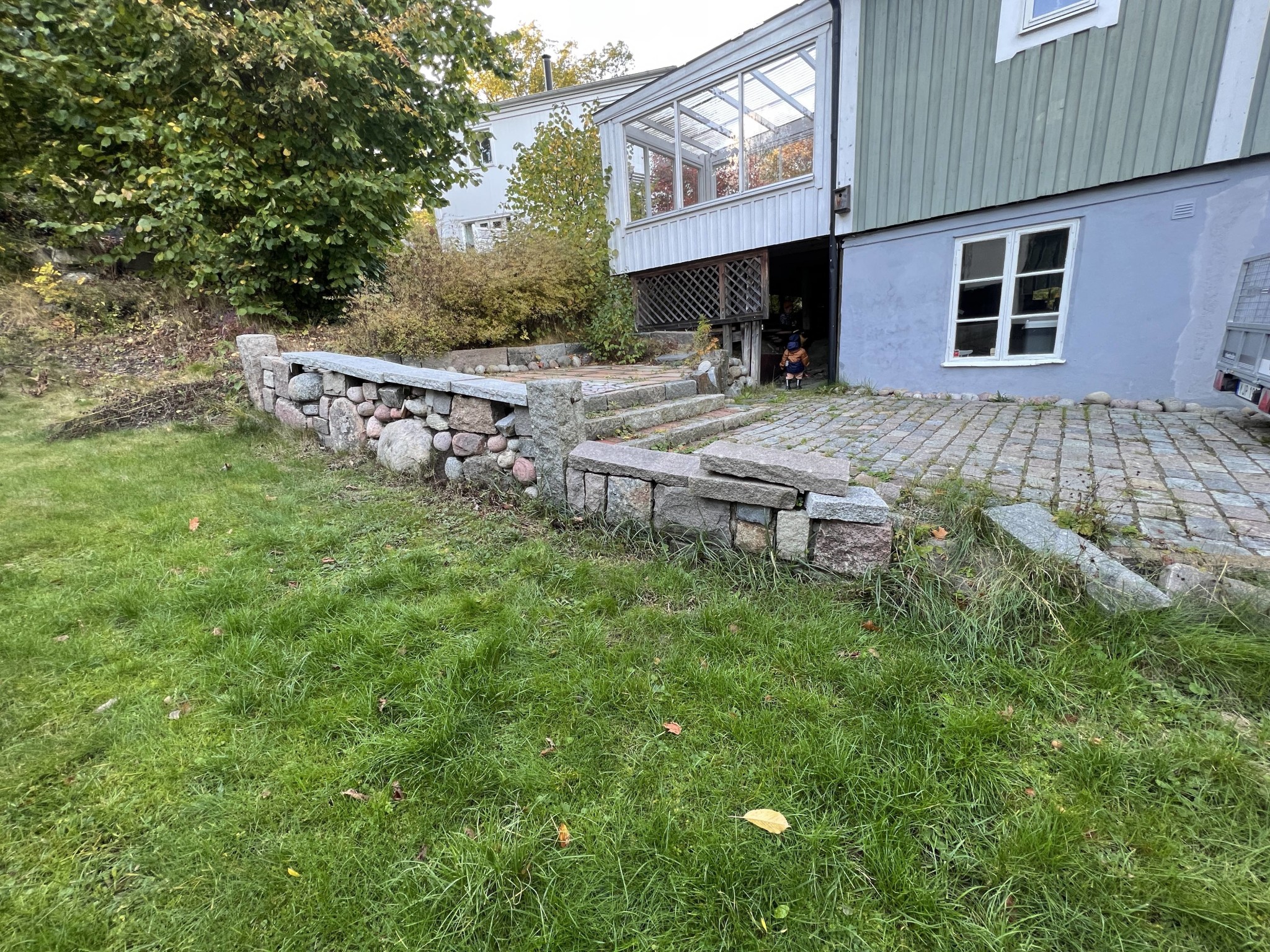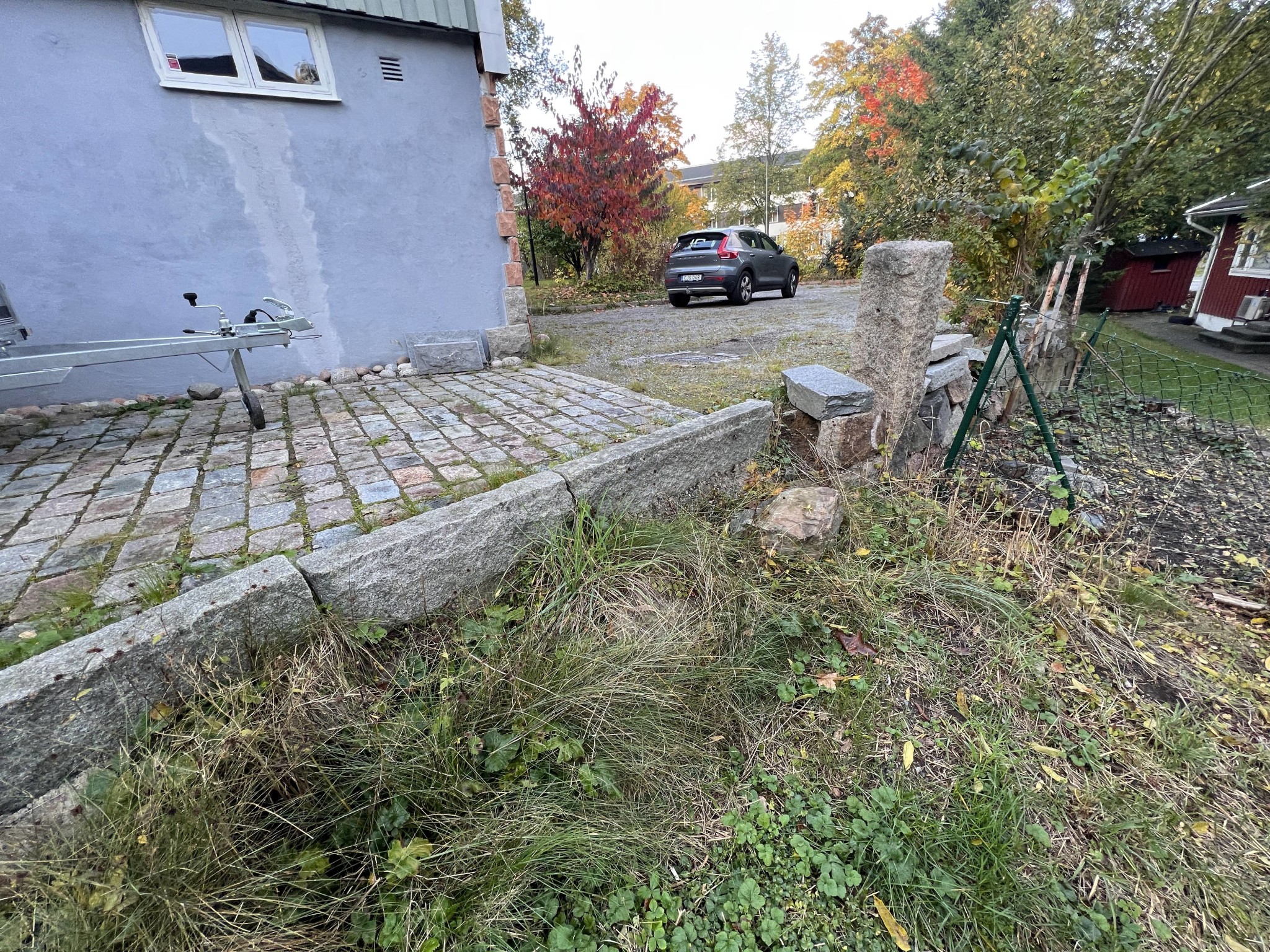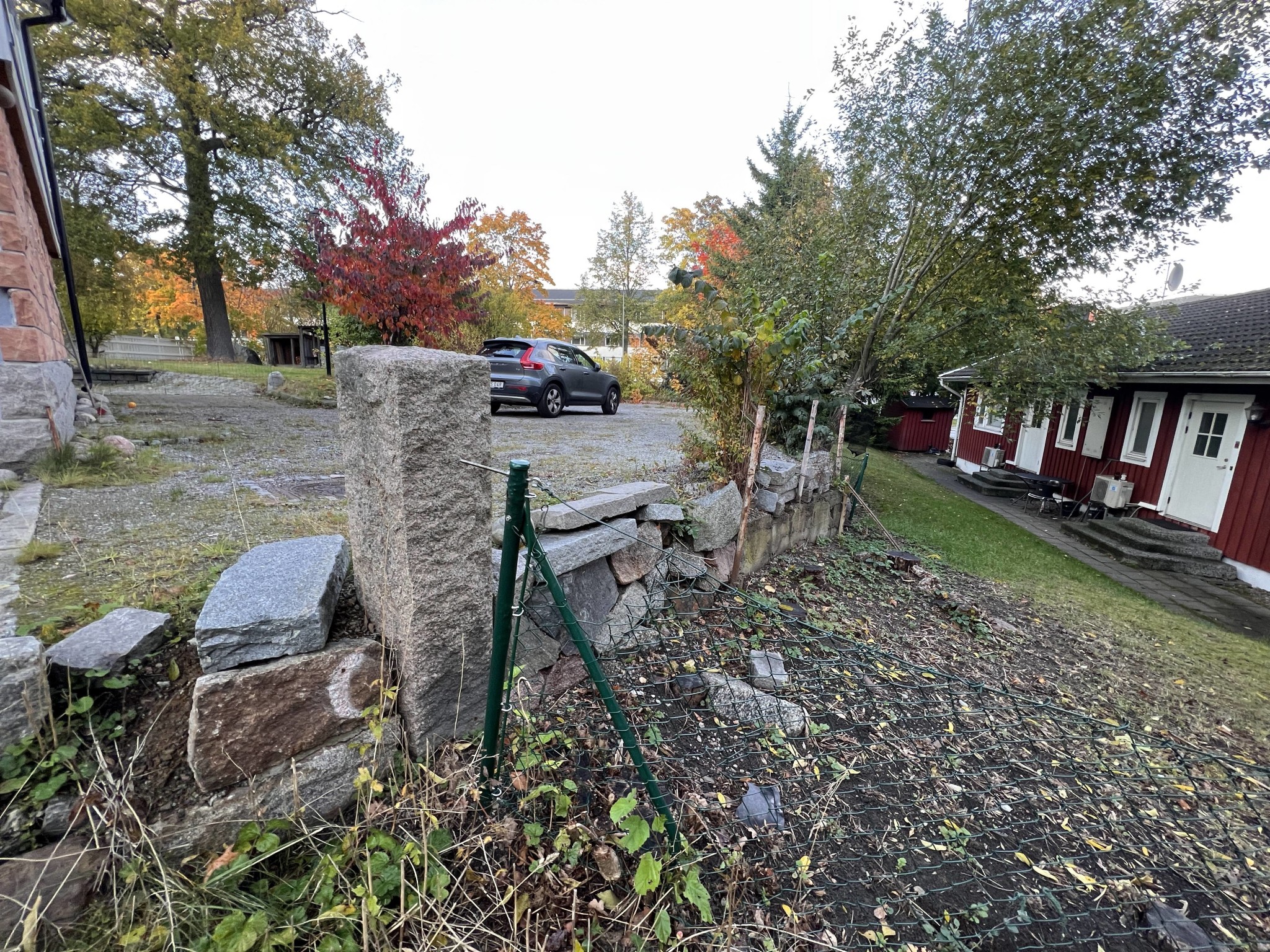 Hej! Har en tomtgräns vi skulle vilja sätta upp ett trästaket, 110 cm högt. Problemet är att vår tomt ligger 20 - 80 cm högre än grannarna, och tomten är utfylld med sprängsten och lite annat. Staketet skall bli ca 30 meter långt. Har haft en snickare över, som menade att marken bör fixas till först, så att det finns något ordentligt att gjuta plintar i. Men vad bör göras utan att det blir orimligt dyrt?