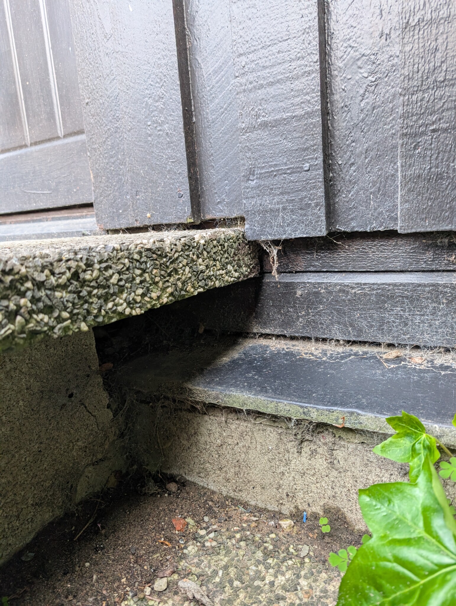 Ska bygga en stentrappa upp till entren med stenblock. Hur undviker jag att den liggande panelen bakom blocken inte blir fuktskadade? Ska man byta ut den mot en plåt?