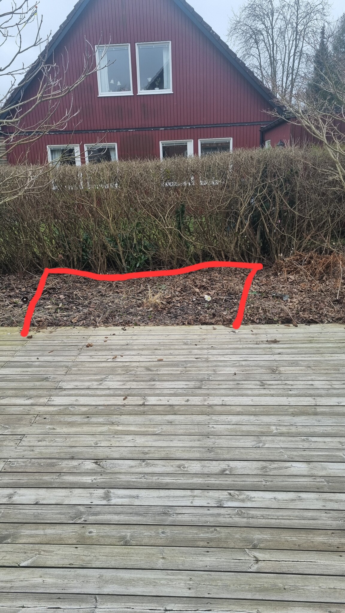 Vill bygga ut trädäcket en liten bit som på bilderna inom det rödmarkerade området. Det befintliga trädäckets stommar står på stenplattor. Hur går jag bäst tillväga ?