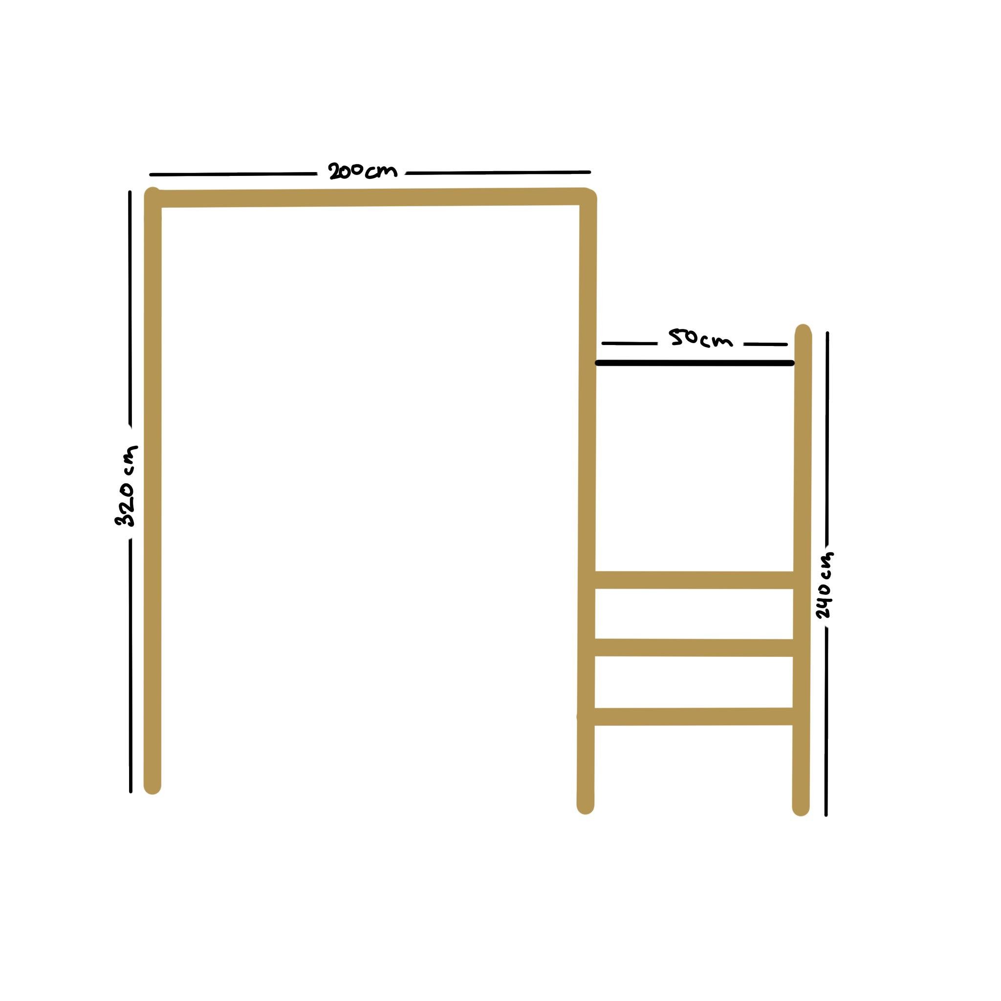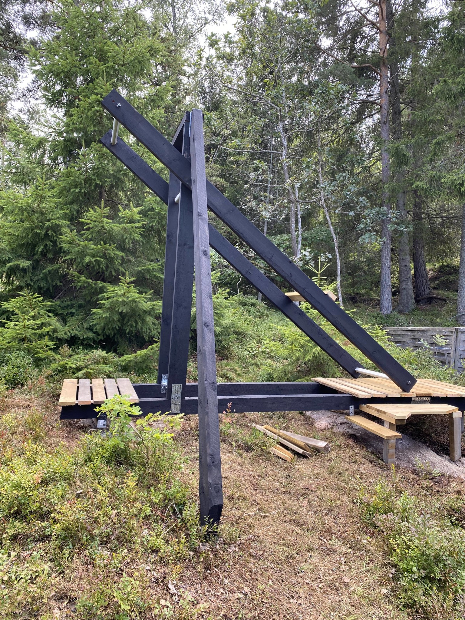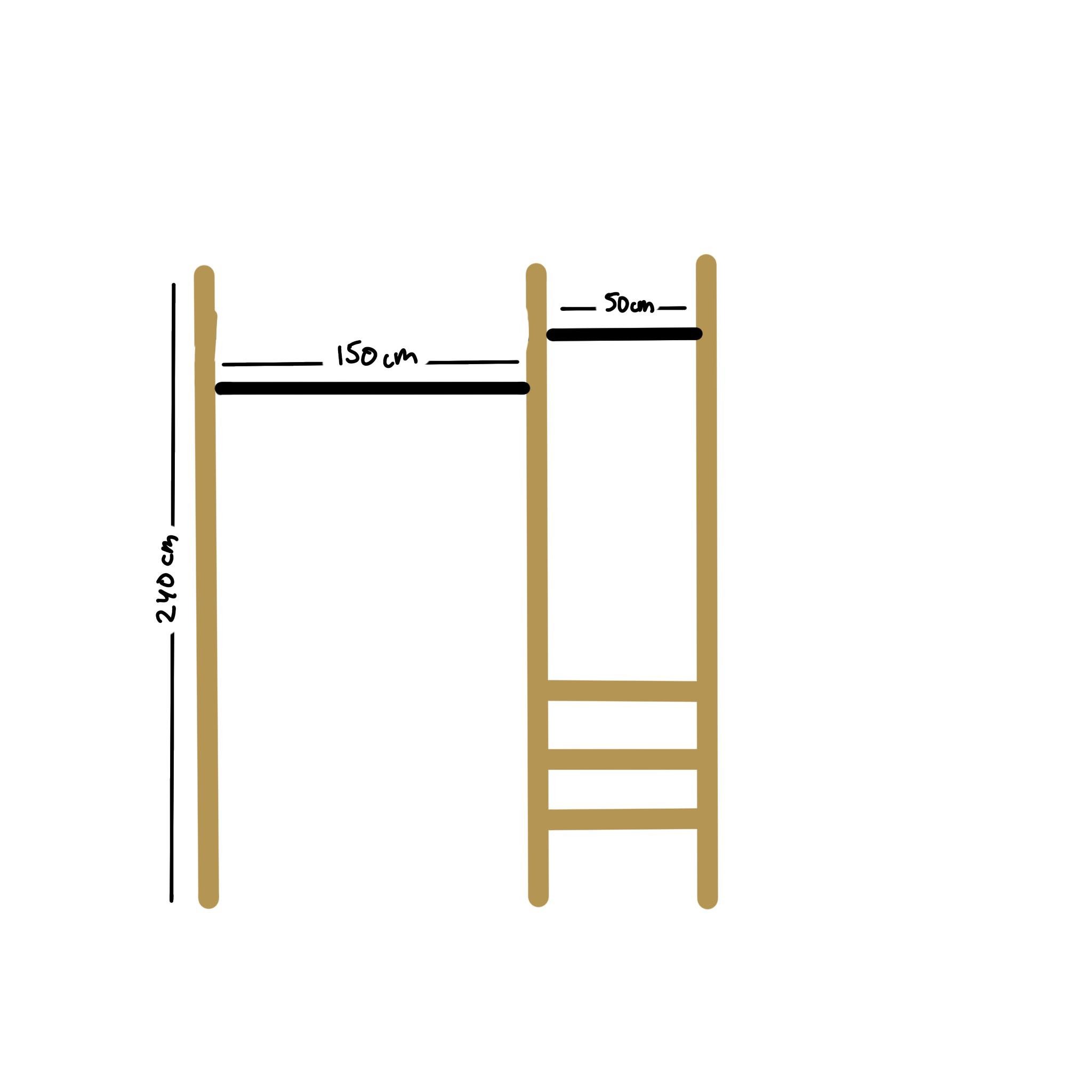 Trevligt projekt för att lära sig! Jag hade nog velat ha en regel mellan chinstången och den yttre stolpen vid ringarna. Då får du en ram runt hela och belastningen på markfästet blir inte lika stor.