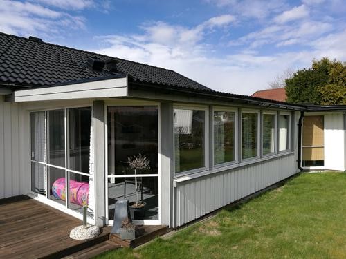 Vi skulle vilja få till något sånt här framöver. Inte exakt, men något liknande med en stängd kortsida, en kortsida med skjutdörrar och sedan en långsida med väggar/fönster.