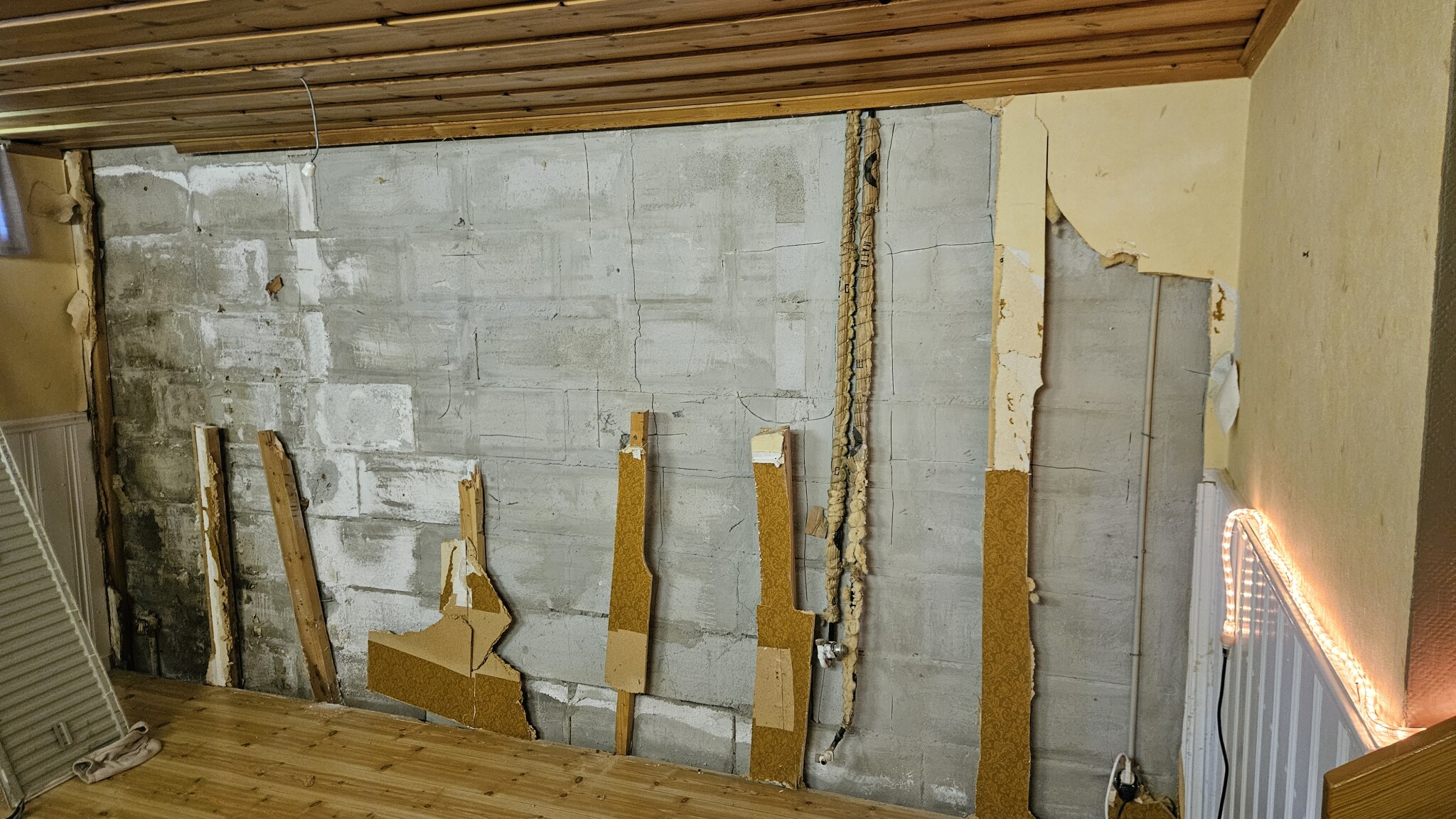 Ser att detta ämne har vart på tapeten förut men vill ändå ha tips och tankar. Börjat riva denna vägg och pluggat rören som gick till radiatorn som satt där. Tror jag måste bort med en bit av golvet för att komma åt att ta bort resten av reglarna nertill. Frågorna är många och budgeten är tight. Jag ska bygga en ny vägg där nu. Min tanke är stålreglar med någon typ av spånskiva och gips på utan isolering mellan reglarna. Lämna glipa upp och ner till med luftade lister/socklar. Har också läst om tak/hatt profiler för att slippa tak och golvskena. En annan tanke jag haft är att bygga en ny vägg utanför allt det där och bygga in allt bara. Hjälp!?