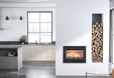 Om du vill ha ved att elda med kan du ordna utrymme ovanpå skåpet, det gör skåpet ännu mer osynligt.