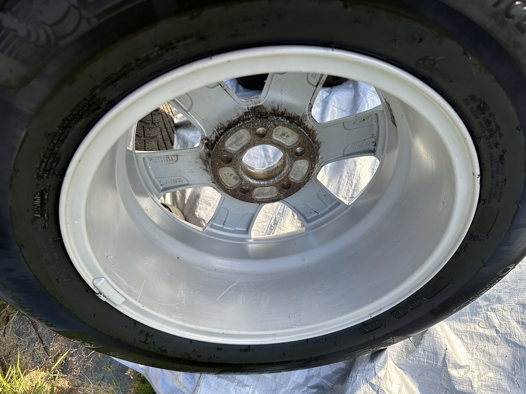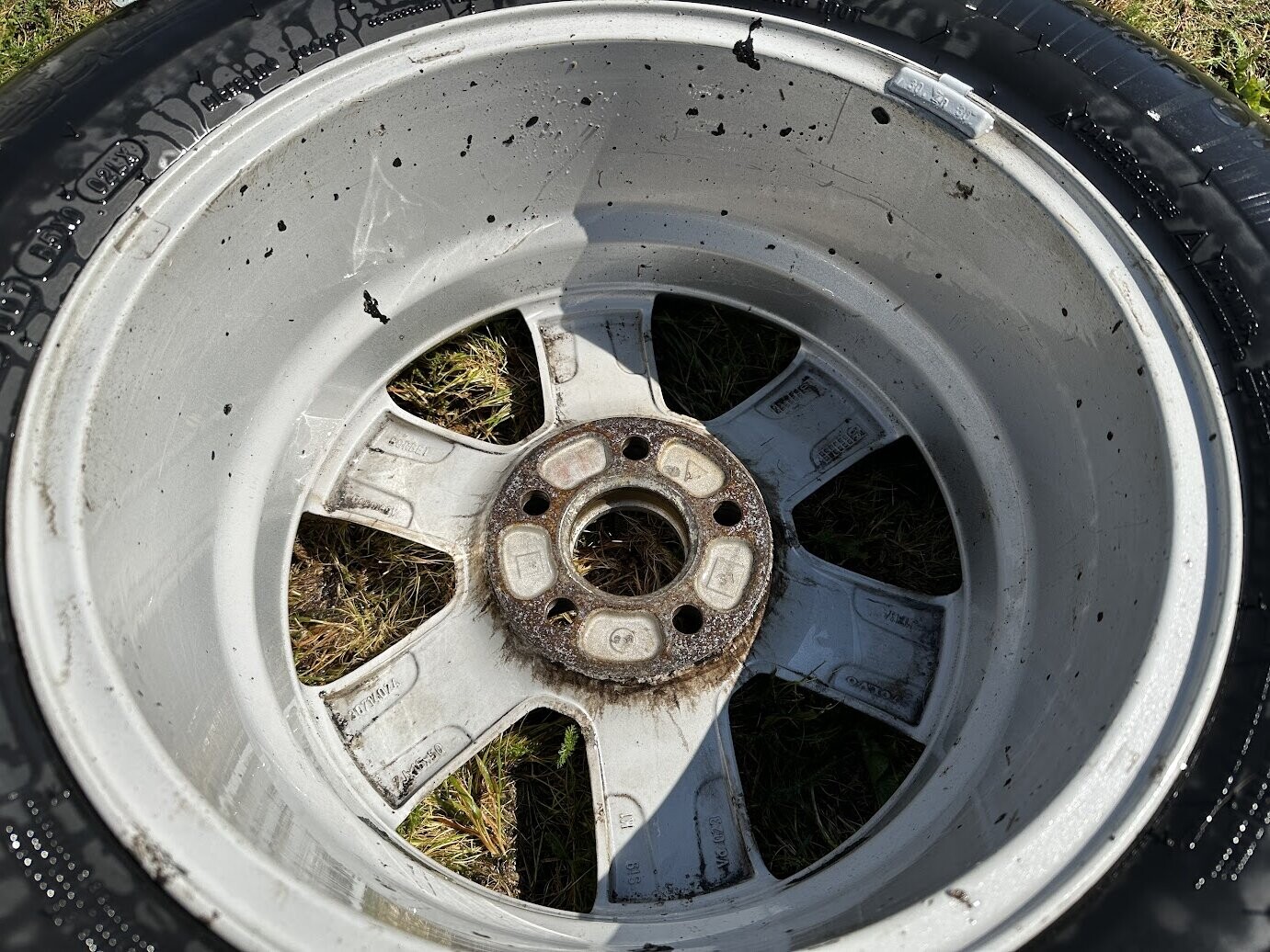 Med nyvunnen motivation och kämparanda gav jag mig på vinterhjulen till Volvon. Det var här jag insåg att gårdagens svarta VW-fälgar med blott 400 mil bakom sig närmast kan jämföras med den tutorial man tvingas igenom i ett nytt TV-spel. Nu var det dags för en fiende på riktigt. Insåg snabbt att för att inte driva mig själv till vansinne och förgås i värmen så fick jag sätta en nivå av "good enough"
