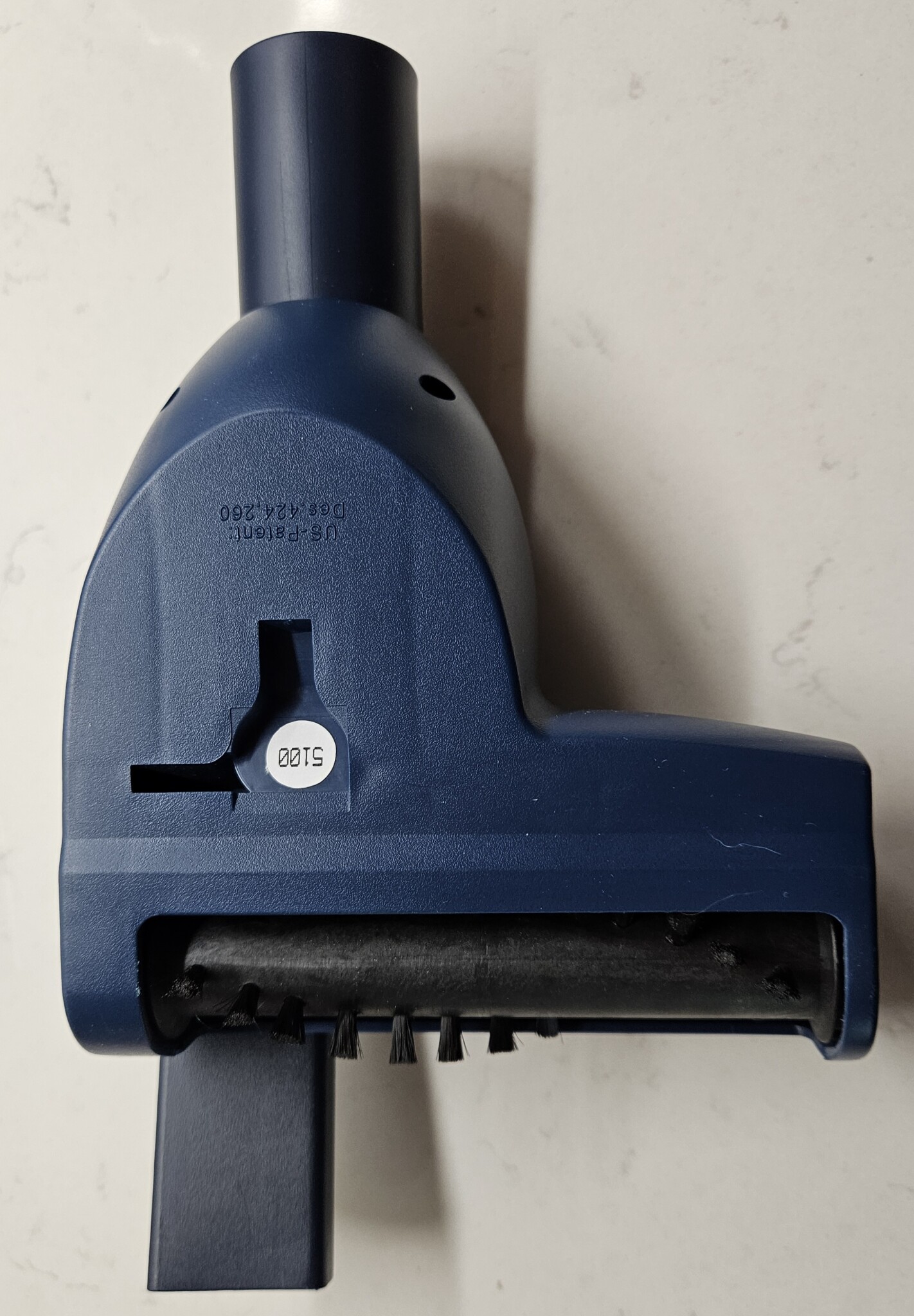 Där var också ett långt smalt munstycke, men det var lite väl trångt för dammsugaren. Den stängde av sig pga överhettning efter en stund, men hämtade sig när den svalnat.