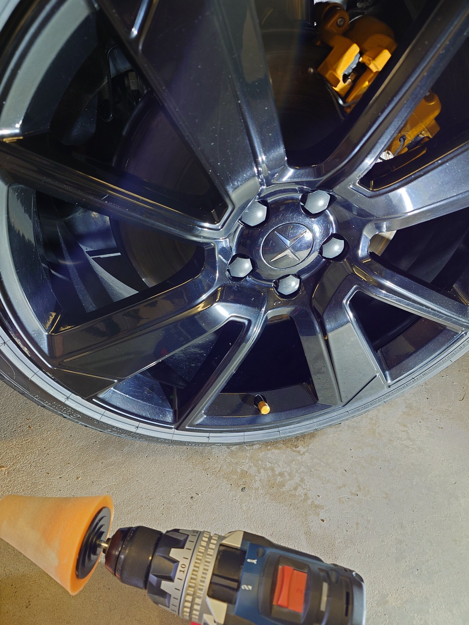 Har retat mig lite på att de svarta fälgarna som ska vara blanka men låtits oxidera lite av föregående ägare.