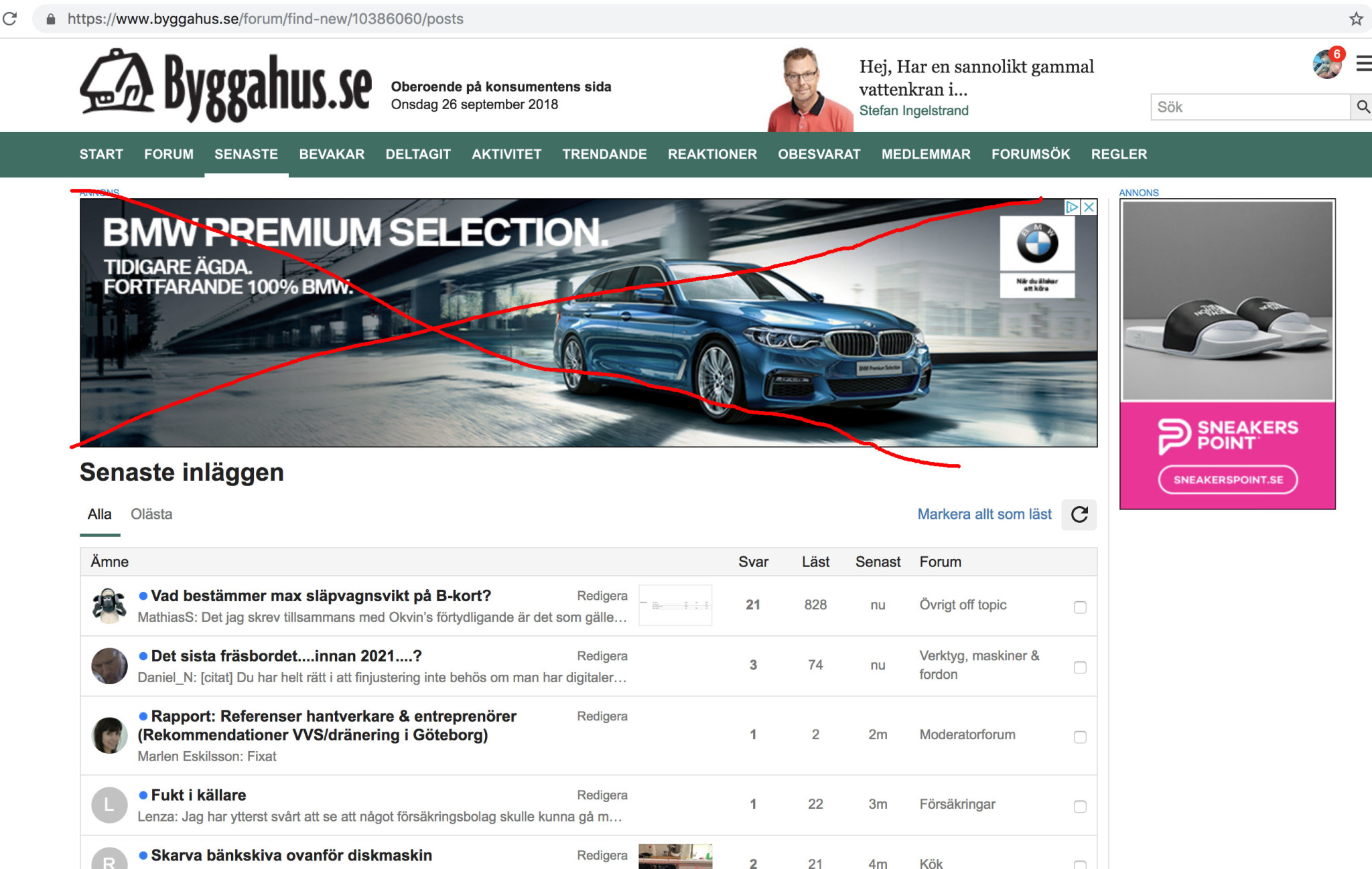 Från och med imorgon testar vi ta bort den stora annonsen som syns högst upp på alla sidor.