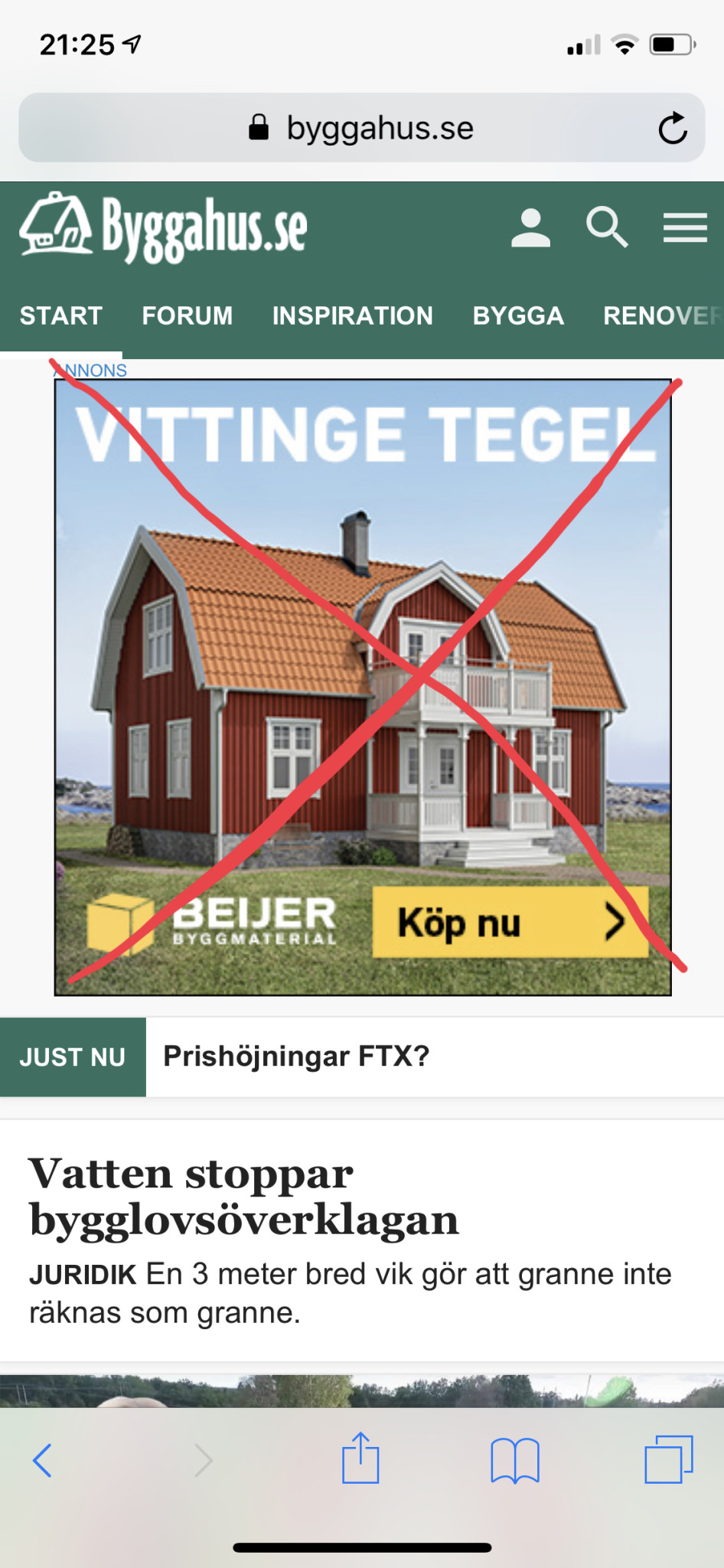 Byggahus gör sajten snabbare genom att ta bort stora panoramaannonsen högst upp