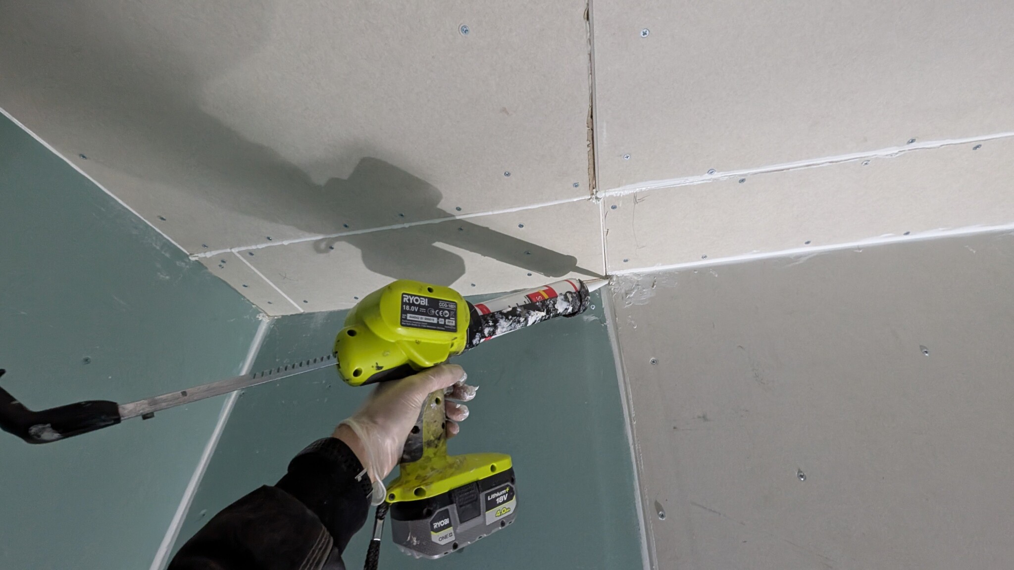 Det är dubbla gipslager överallt och alla skarvar ligger omlott.