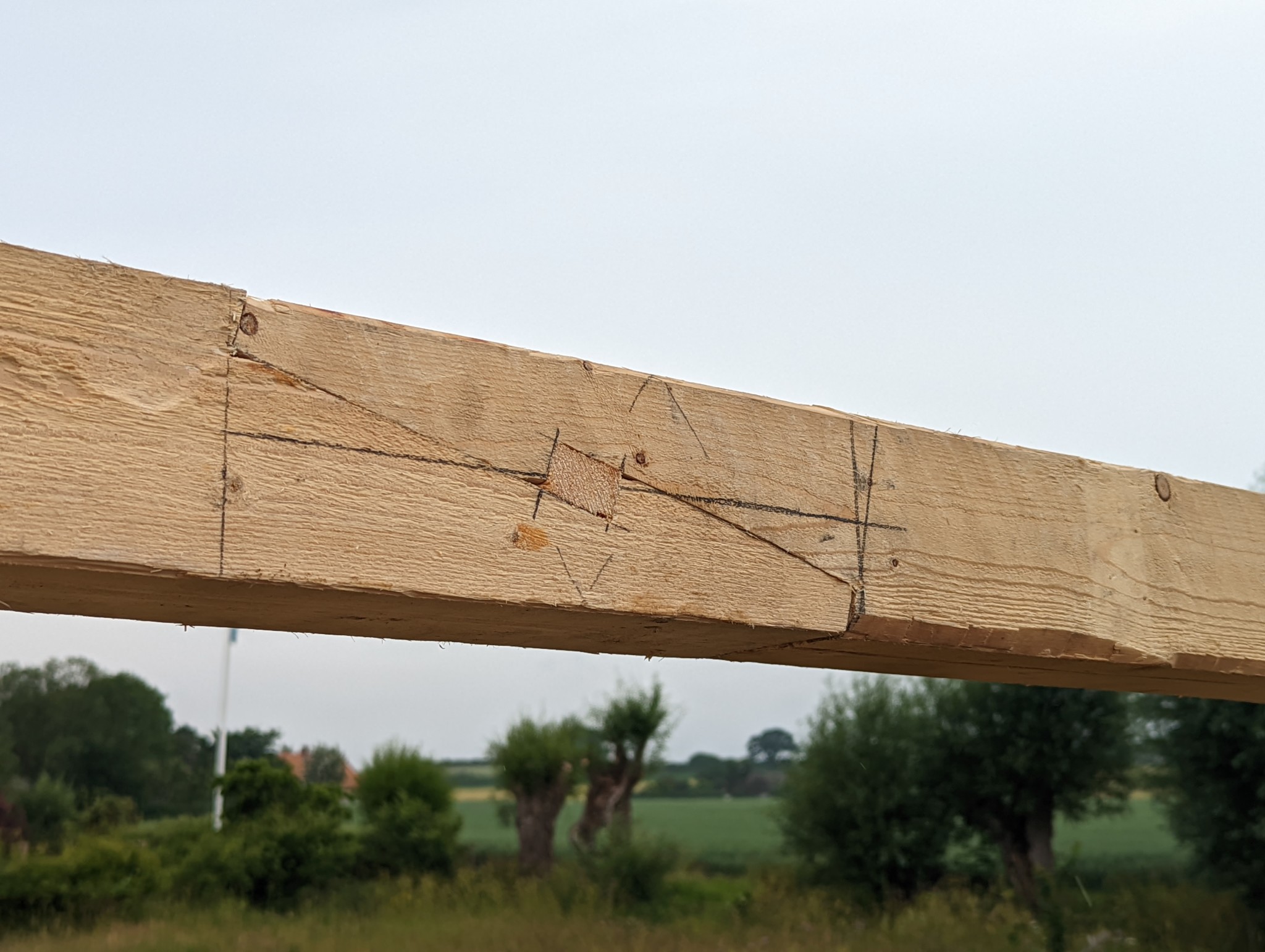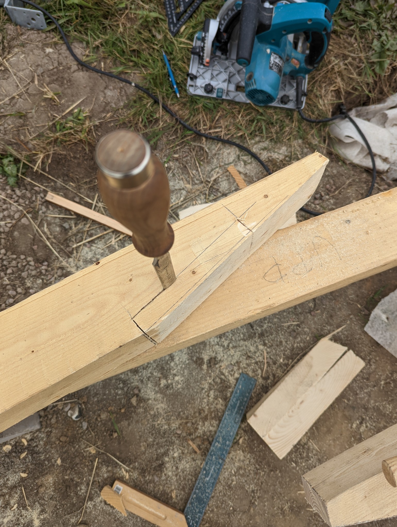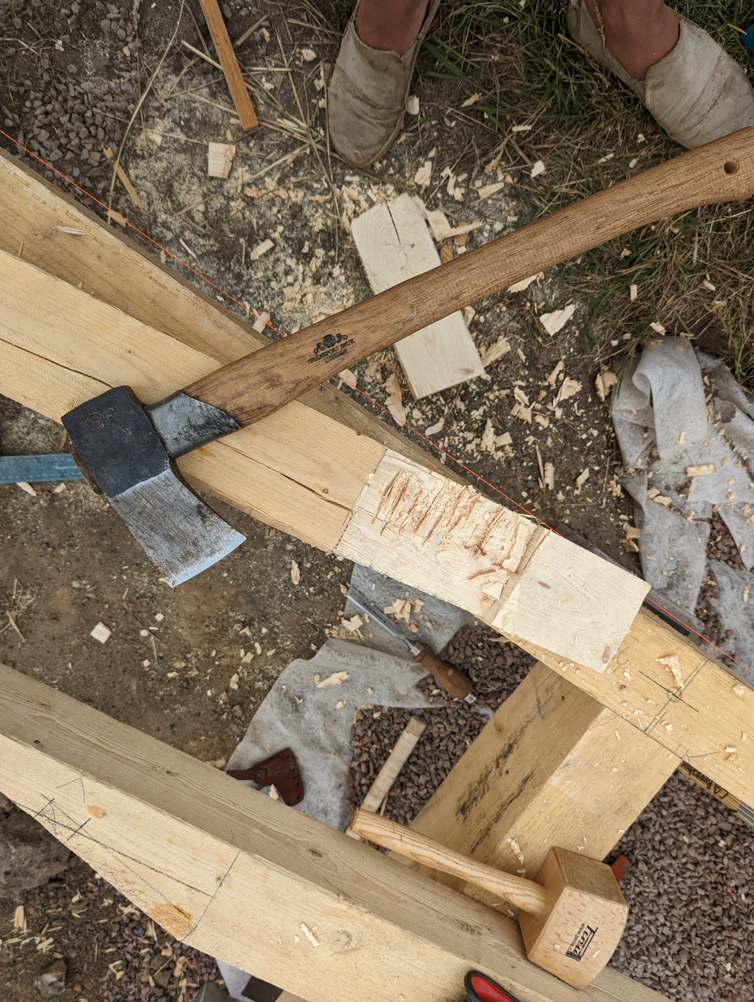 Blixtskarven ska hålla som den är (den tar ju inga större laster då taklasyerna tas ner rakt över stolparna. Sen har jag dock kört med hängslen och livrem och skruvat ihop med konstruntionsskruv. Det gäller på flera ställen i konnstruktionen, ibland för att vara på den säkra sidan och ibland som ersättning för traditionella stolpverkssammanfogningar för det blev effektivare så... Jag har tolkat fritt, och använder en hel del skruv. Men passar på att lära mig tekniker när jag håller på. Hammarbandet är inte tappat, bara skruvat.K kniv skrev: