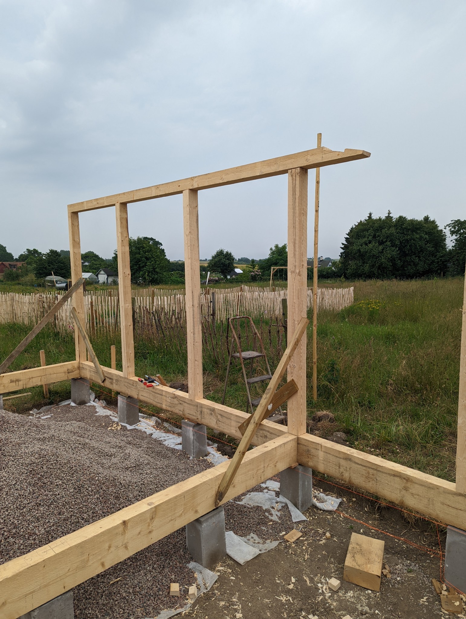 Nu kanske det inte spelar så stor roll. Men snedsträvorna skall sitta "en åt vardera" riktning. Då det endast är bra på att ta kraft från ena hållet. Men du har ju skruvat dem så då spelar det inte lika stor roll.