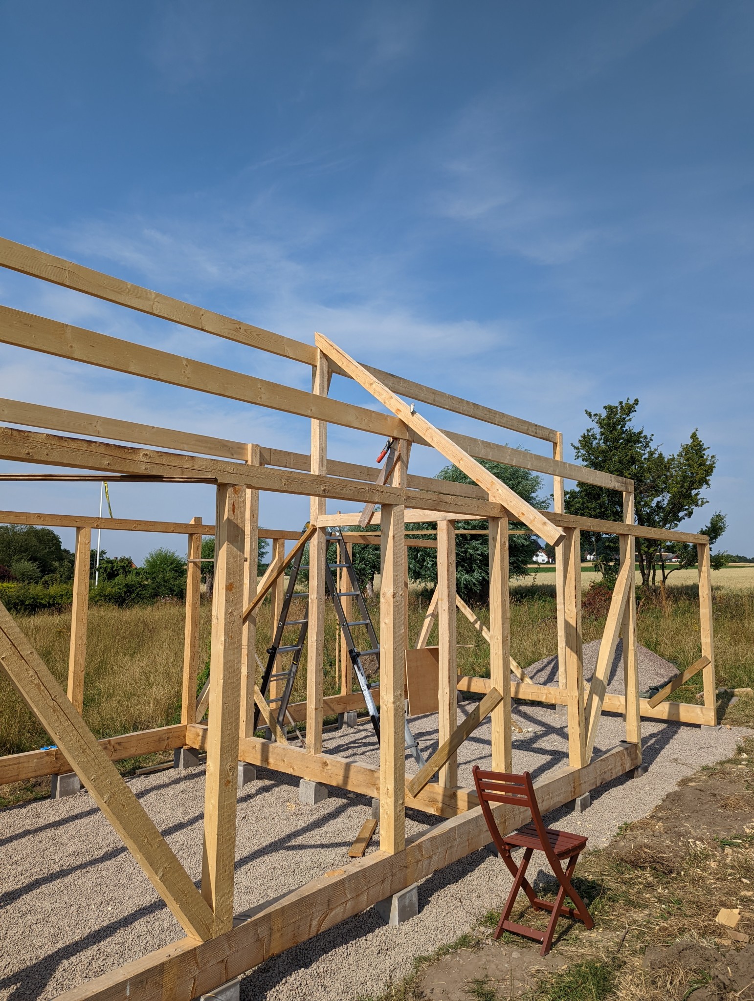 Nu är alla åsarna på plats, i morgon blir det tväråsarna/högbenen, och därefter snedstagning av kortsidorna.