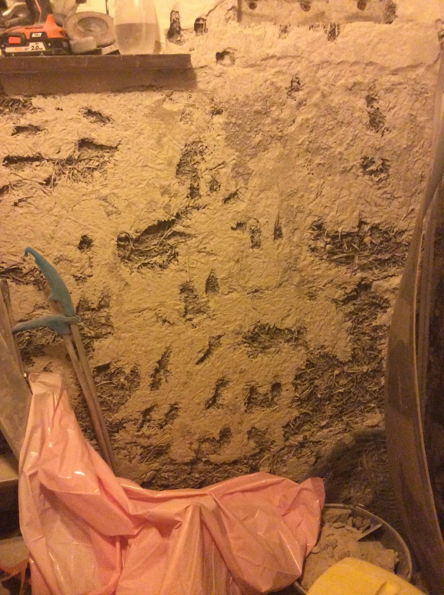 Startade i våras en tråd om ytterväggen i badrummet jag håller på att renovera i källaren. Där hittade jag ett 5 cm tjockt lager Träullit på insidan av betonghålstenen. Det gav mig lite ångest eftersom jag är nybörjare på putsning. Därför har det också dragit ut på tiden.