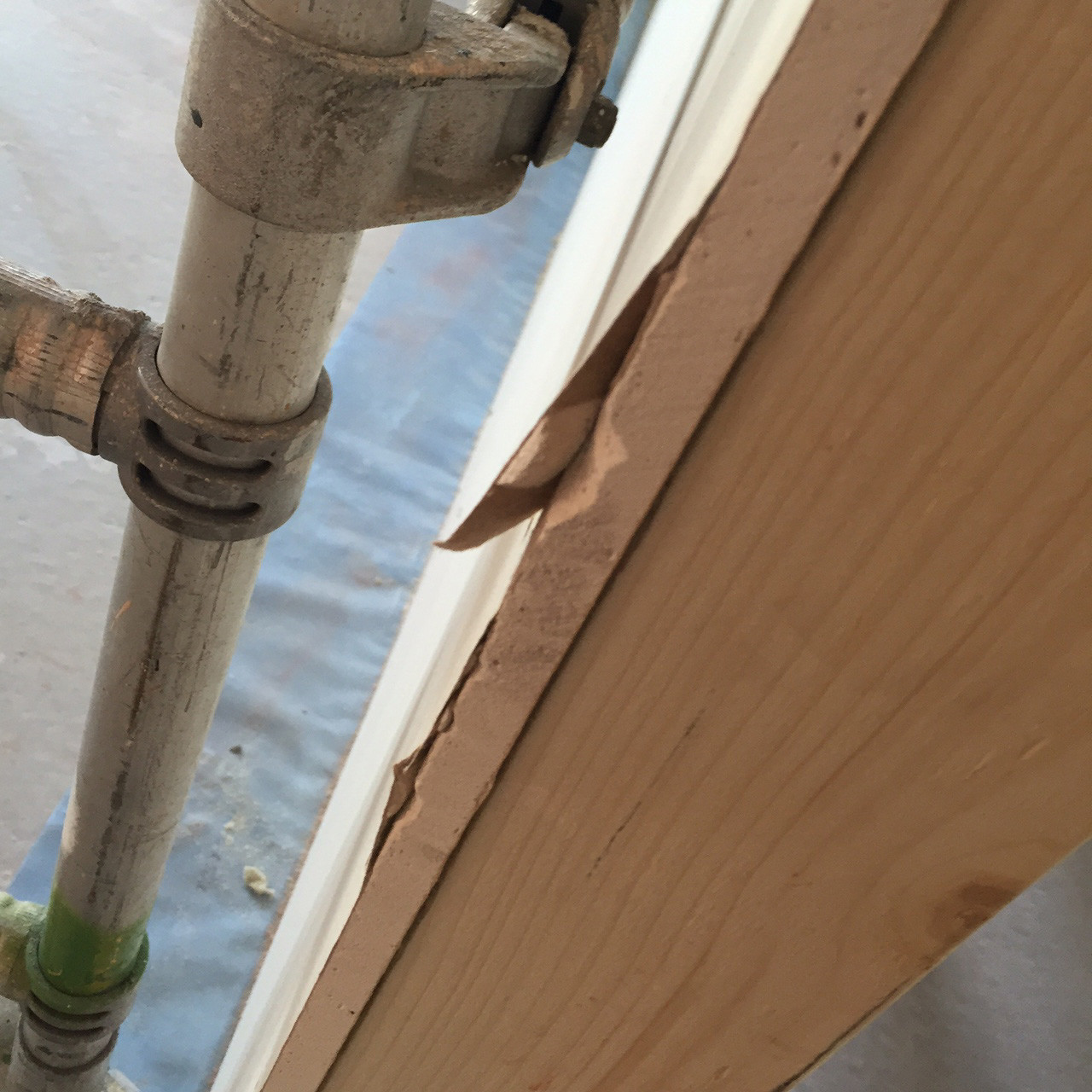 Den sista bilden är ingenting att oroa sig för. Det ska väl antagligen sitta en innerdörr där senare och fodret kommer täcka detta. Oavsett lär målaren få spackla ut det ändå.