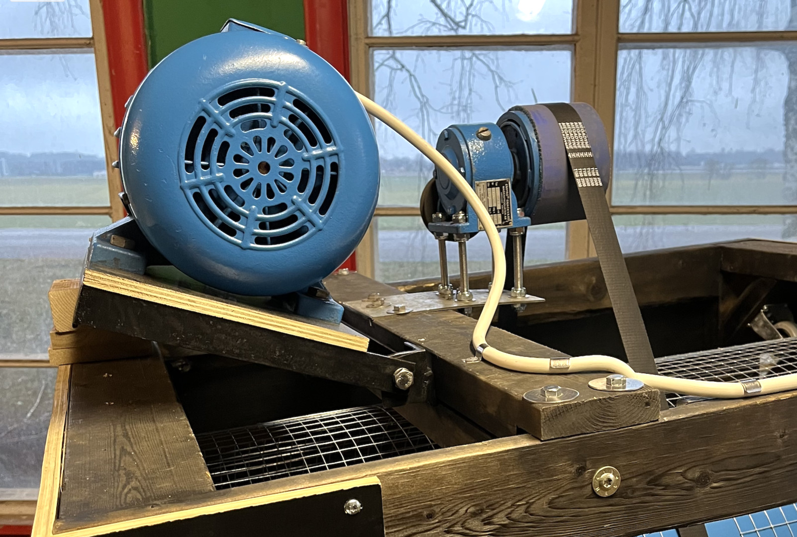 Även motorn har fått blivit monterad på tilltänkt plats, på så sätt är tanken att motorns vikt kommer att hålla kilremmen spänd. Motorn har också fått en ny remskiva med samma spår som växeln. Nu är avståndet mellan remskivorna uppmätt och kilremmen beställd.