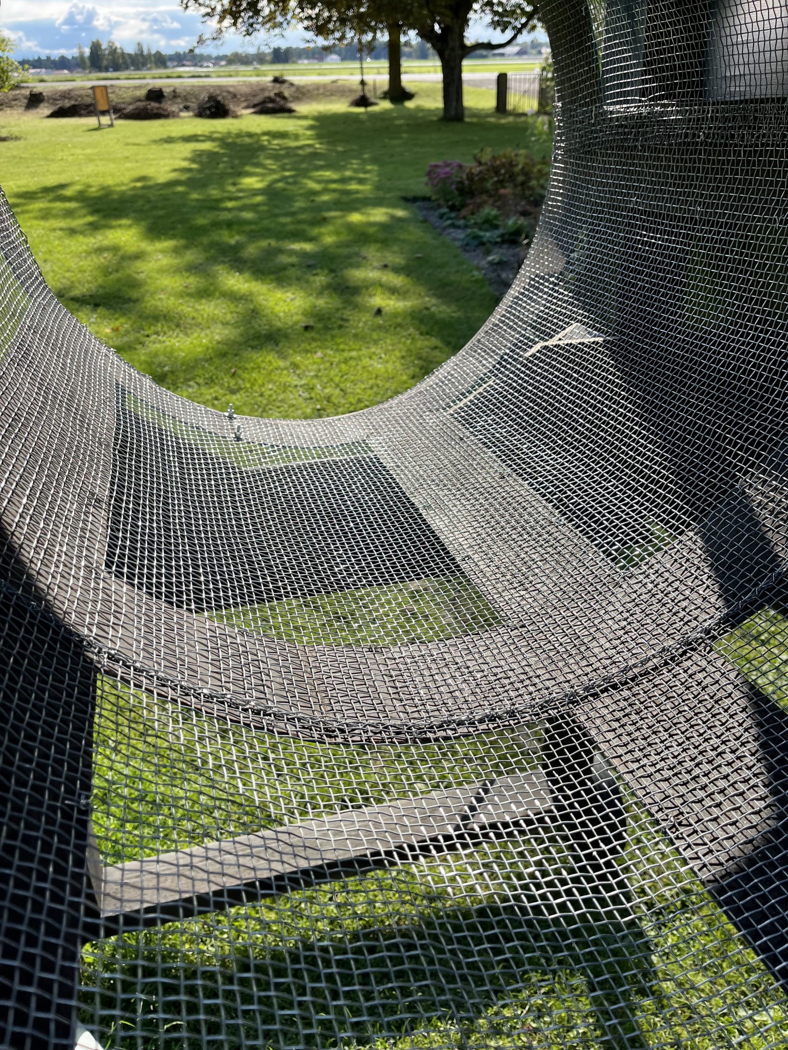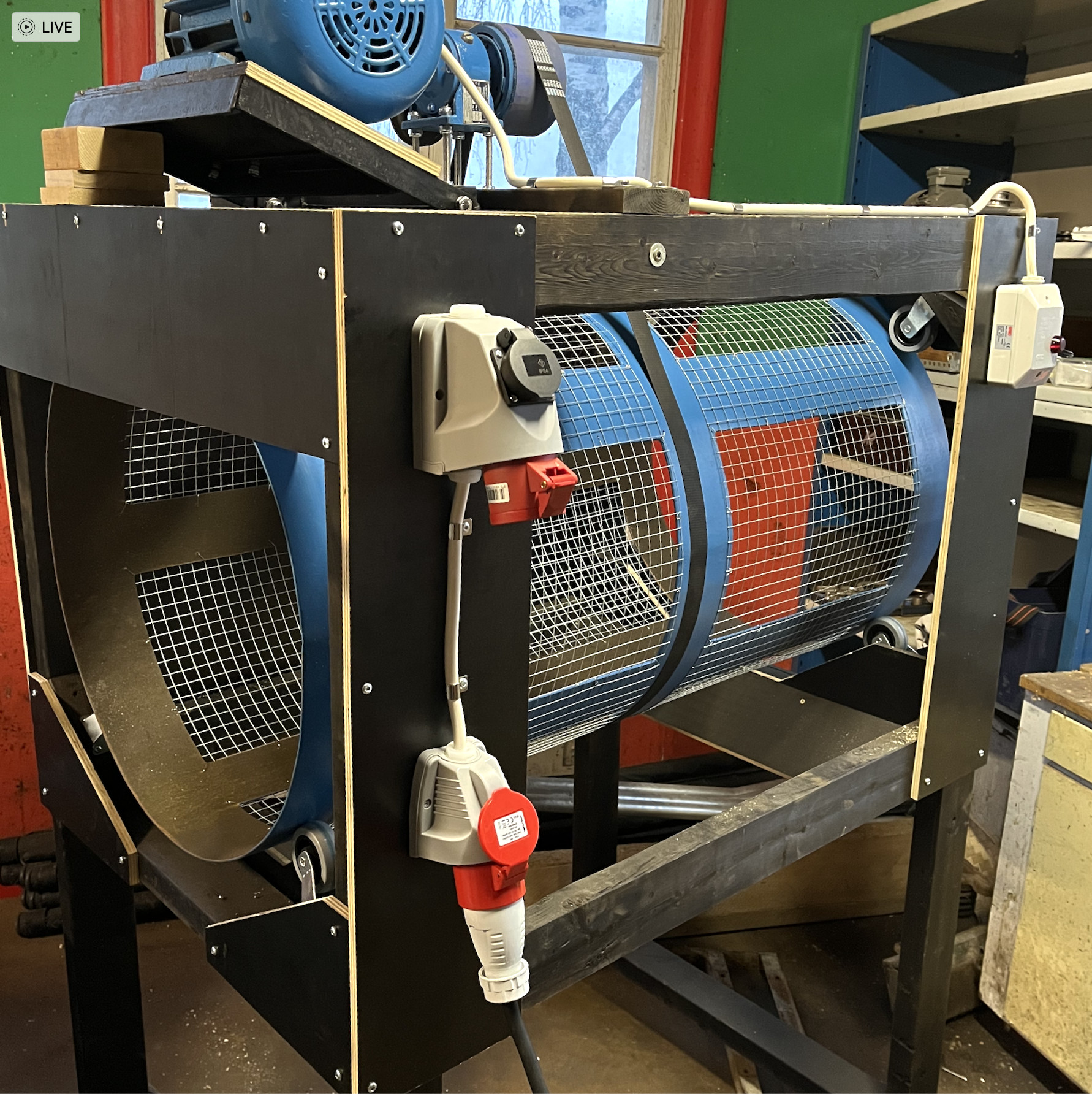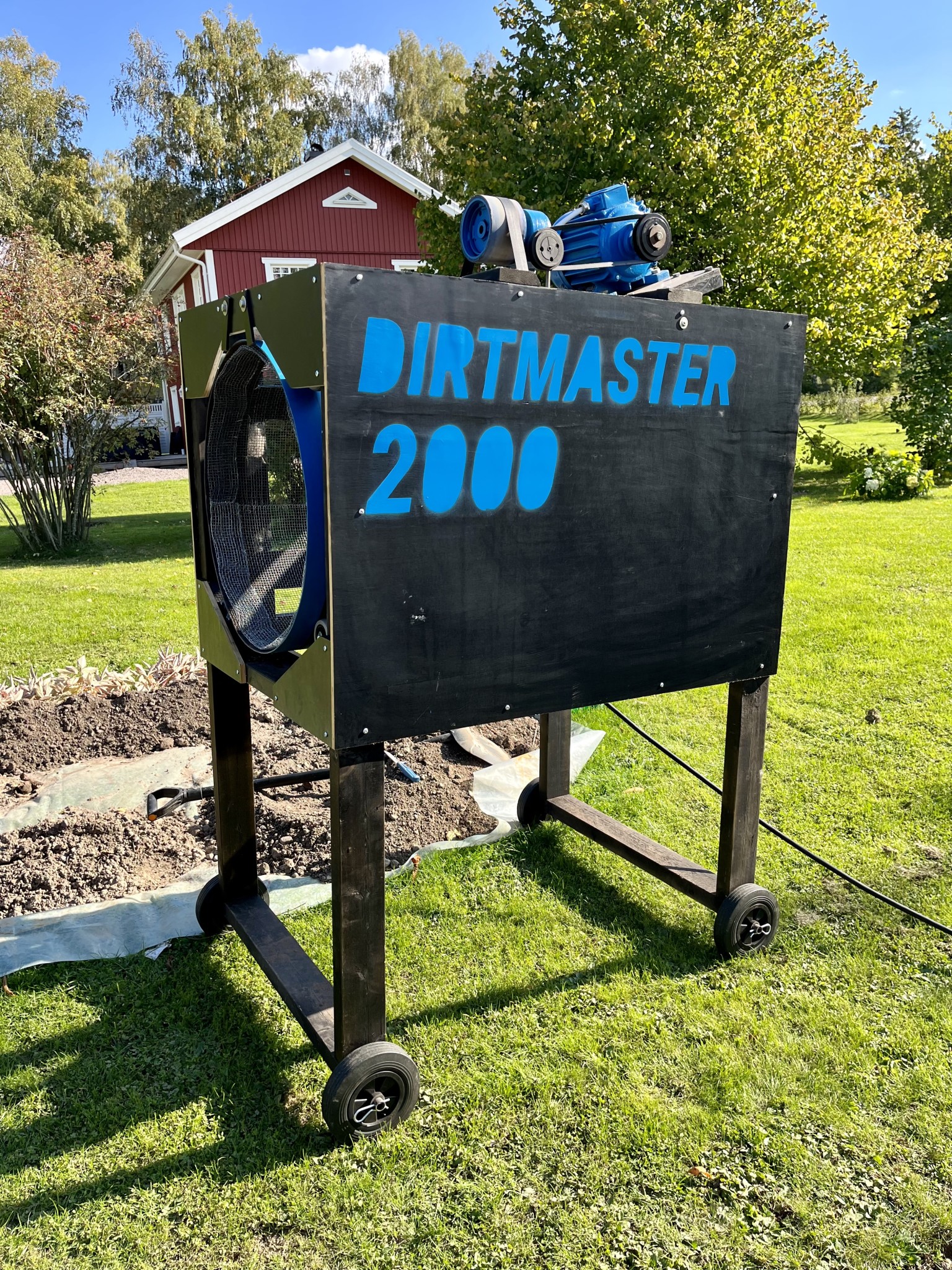 Eftersom vi har gårdsgrus under gräsmattan så är det grus var en gräver, komposten likaså och en del passerade genom nätet. Det svetsade putsnätet har bytts ut mot ett vävt sållnät med 6mm hål och monterats på insidan av trumman istället för utsidan.