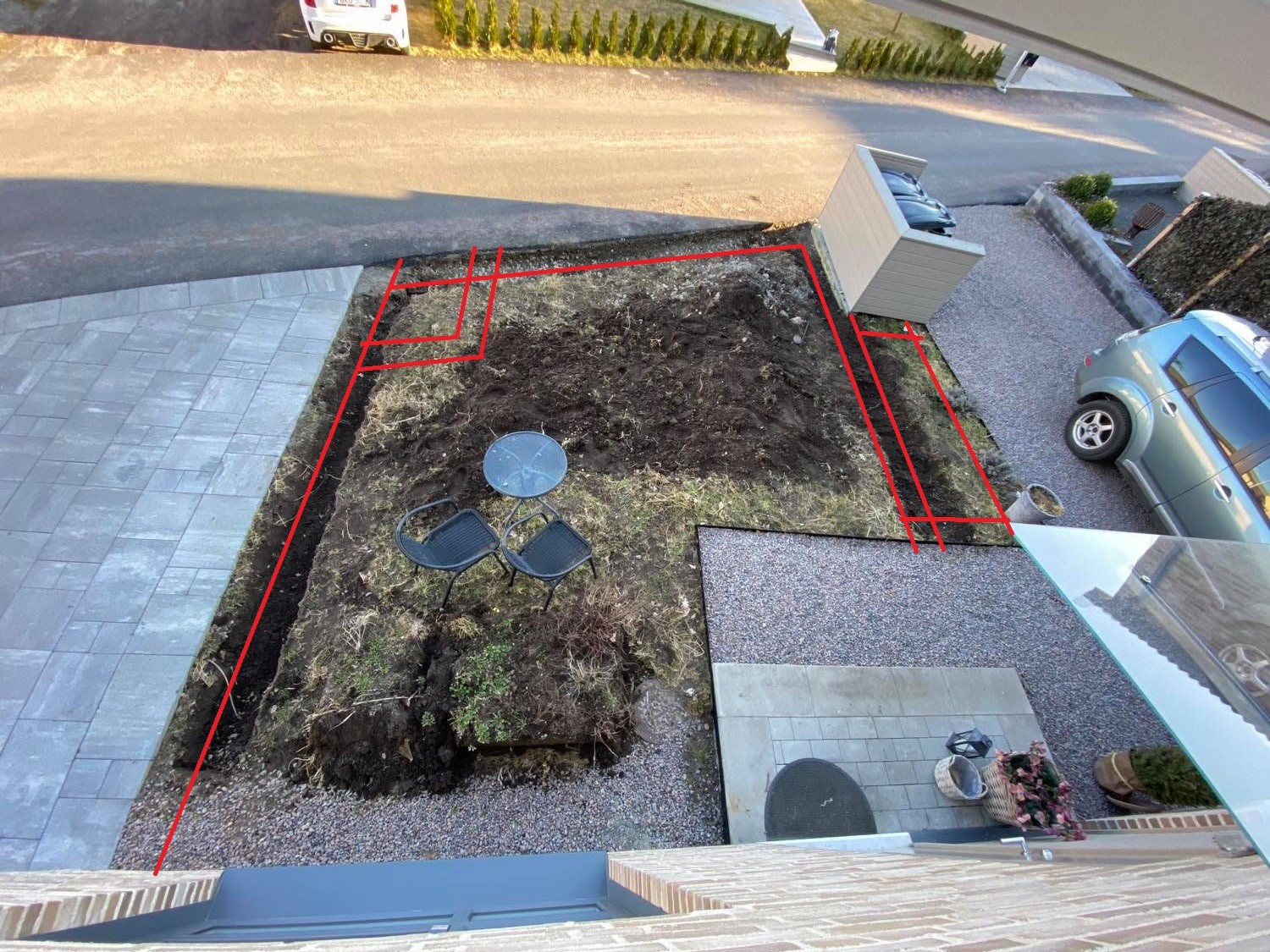 -Hur hade ni hanterat lutningen som finns, gräva ner djupare mot huset och det underlaget horisontellt / två etapper horsontellt? (är nog säkert 1/2 meters skillnad...)