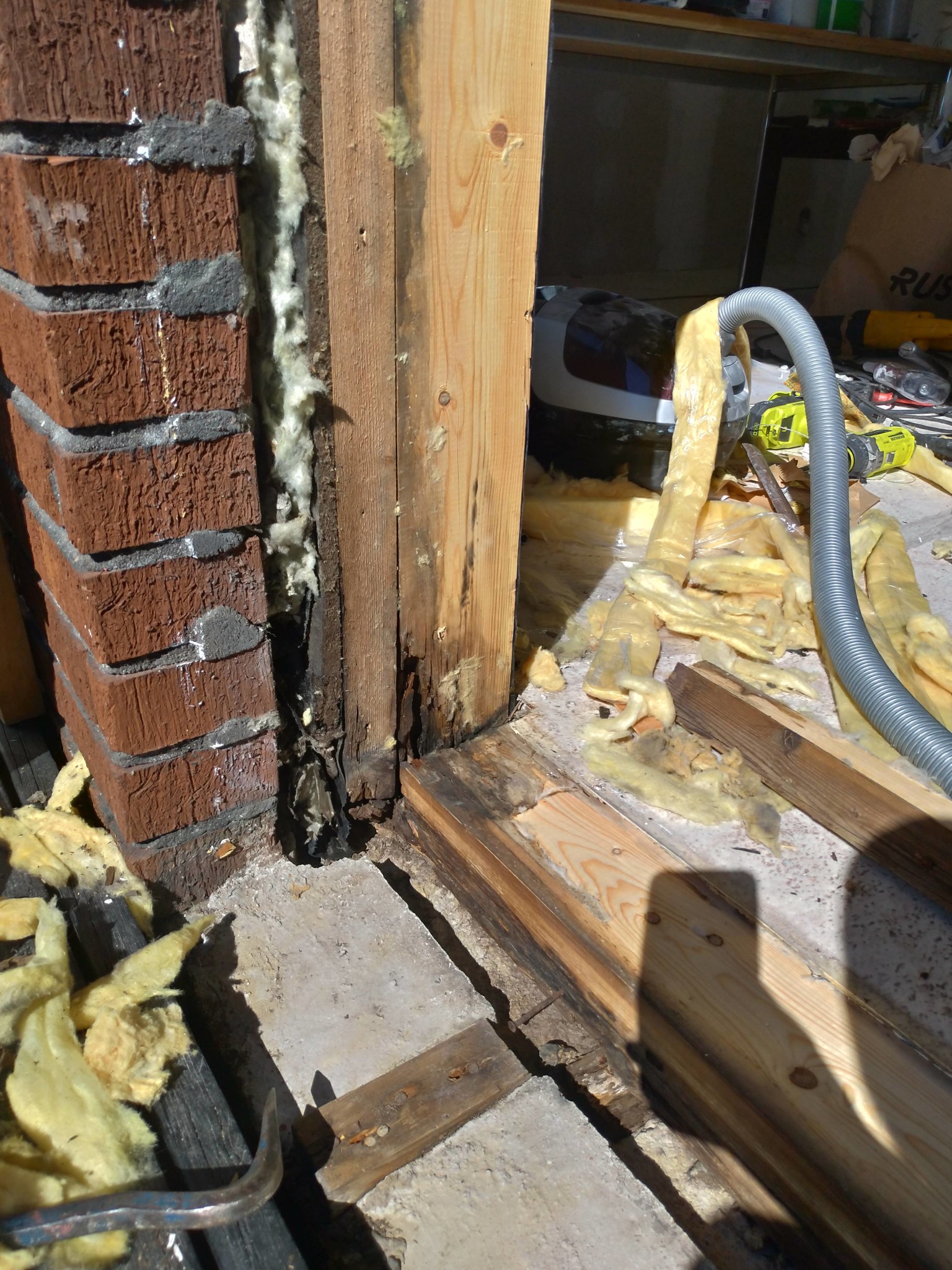 När altandörren byttes såg jag att tidigare bleck styrt in vatten mot ena hörnet.