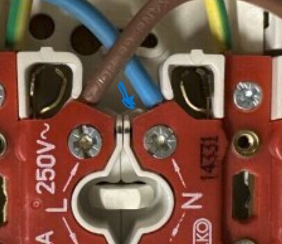 Det borde gå att fästa 2 kablar per skruv, dvs en kabel i varsitt hål vid varje skruv. Så 6 kablar förutom de som redan är monterade i uttaget. Sedan gäller en kabel per hål och aldrig 2 i samma hål. I bilden nedan har jag ritat in de kablar för fas och nolla som borde få plats i detta ELKO uttag.
