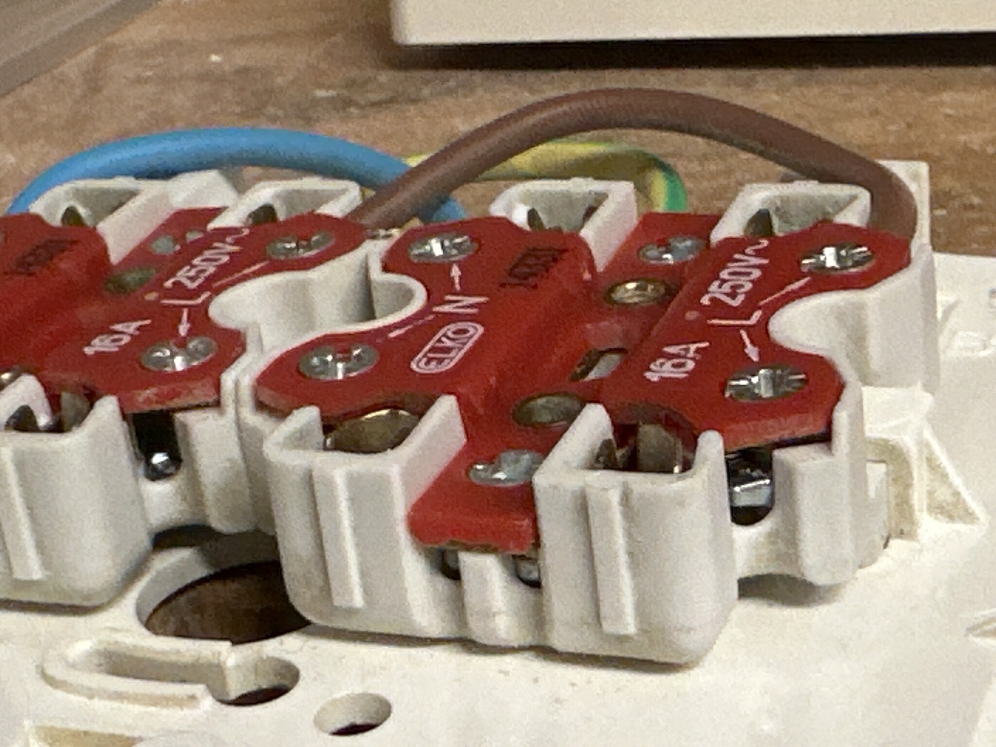 Flera har påpekat att det borde gå att koppla in två trådar per skruv, men jag tycker inte det ser ut så. Möjligen om jag bryter lite i den vita plasten?