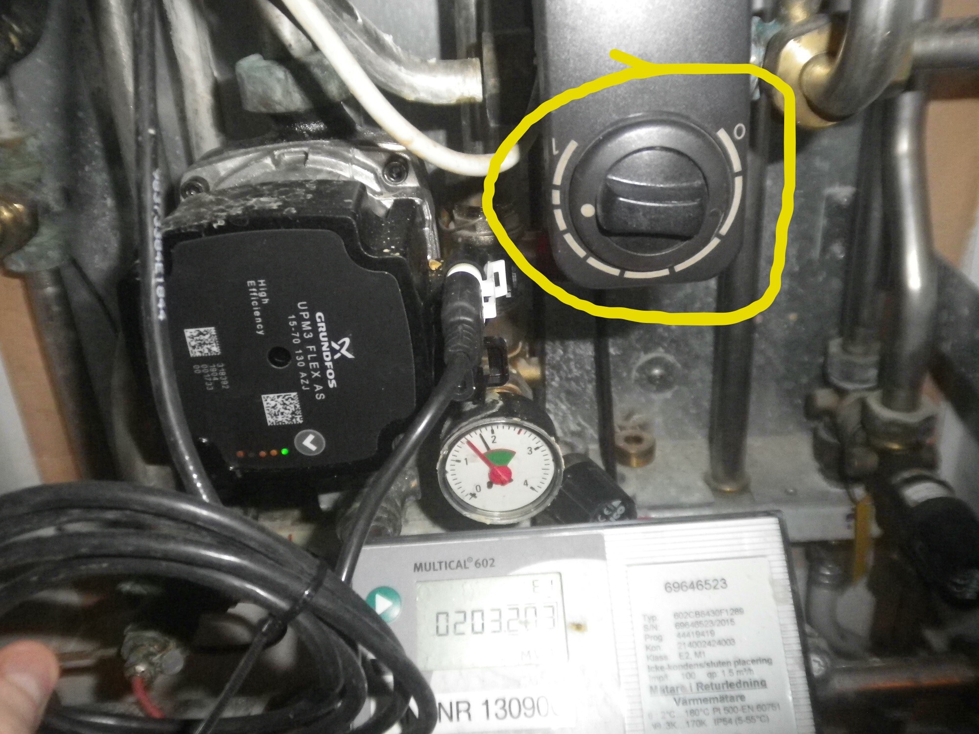 Har du för lite vatten i systemet? Mätaren höger står bara på 0,6 och det kan vara för lite beroende på hur ditt hus ser ut.Werner Wogel skrev: