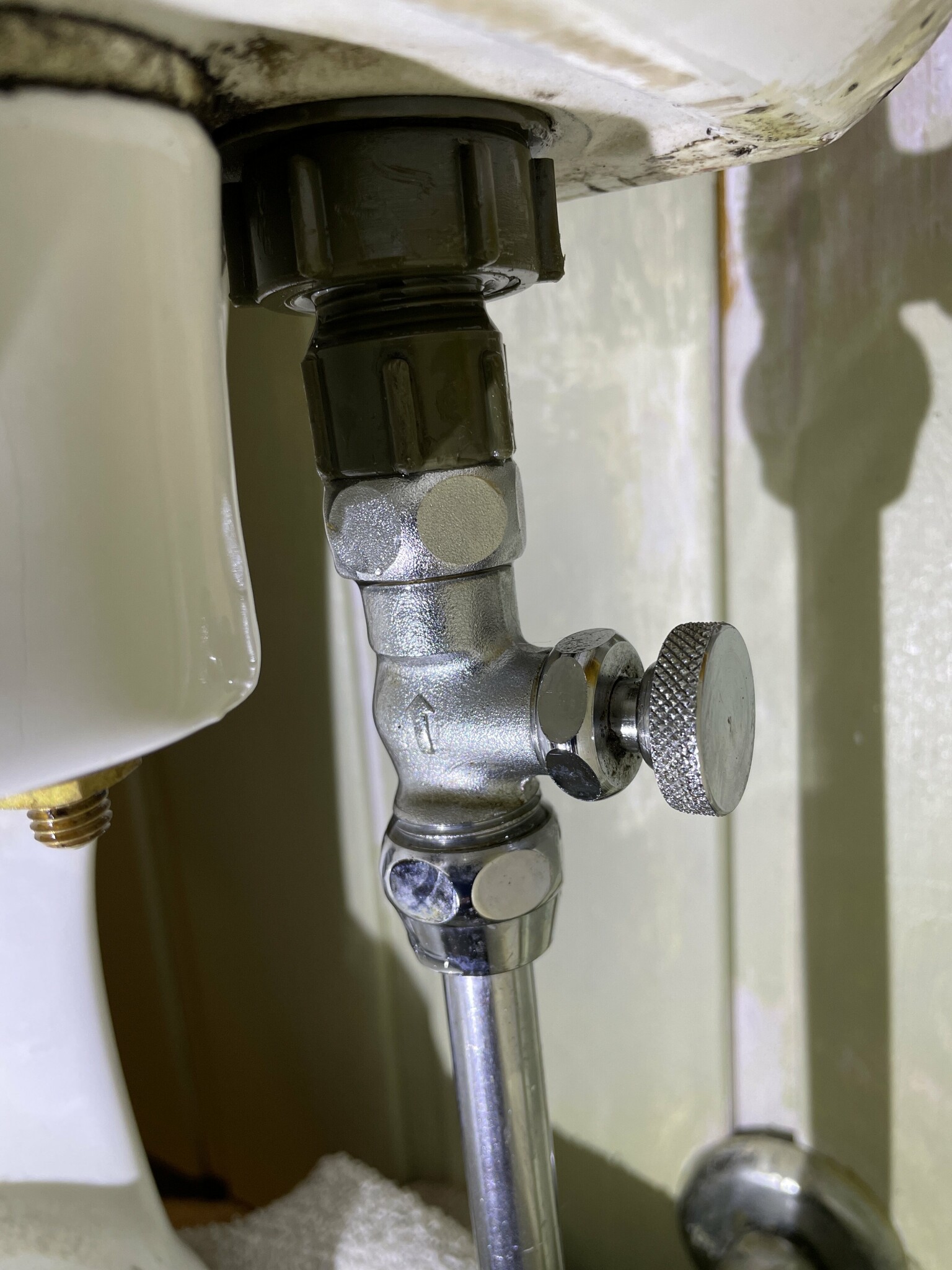 Är det så trångt att du inte får in ett verktyg ( polygrip ) kanske två en drar och en annan håller emot. Då blir det att stänga av inkommande vatten. Lossa kopplingen/muttern vid väggen och lyfta ut toaletten. Skruvad eller limmad stol.