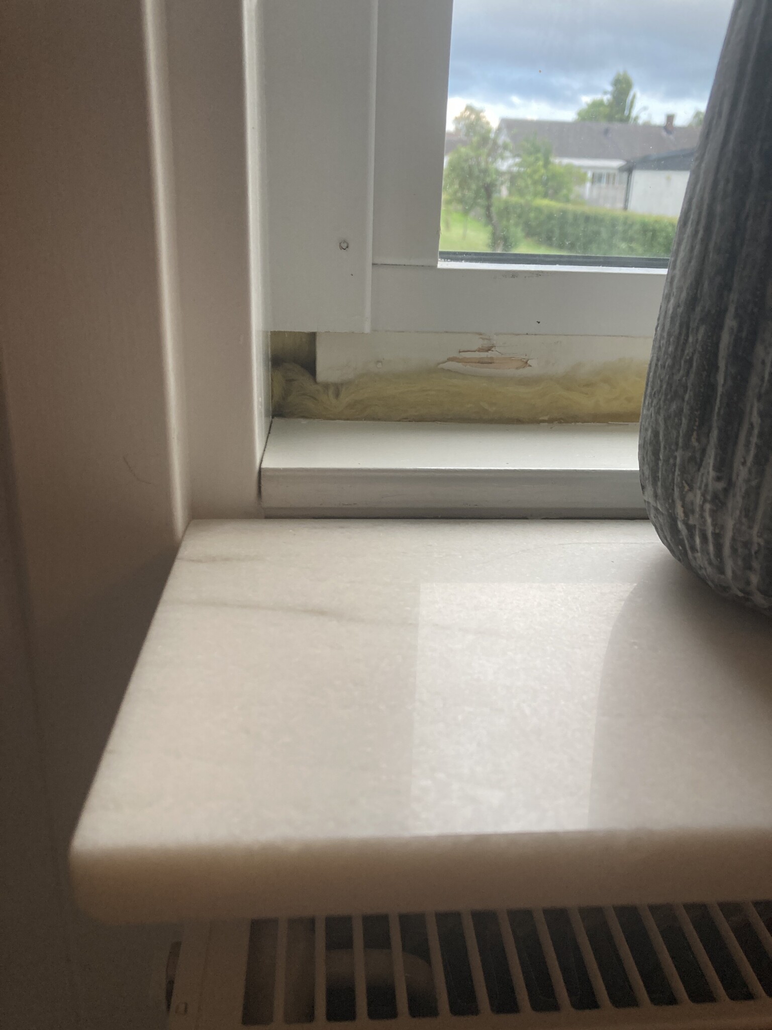 115,5 cm om jag tar bort brädan den 1 cm tjocka bräda som fönstren står på (se bild). Där emot är öppningen i teglet utifrån 120 cm. Jag är lite sugen på att ta bort brädan (smygen) över fönstret för att eventuellt se om jag kan trycka in fönster på 12 i karmmått i höjd. Hur har ni andra gjort?