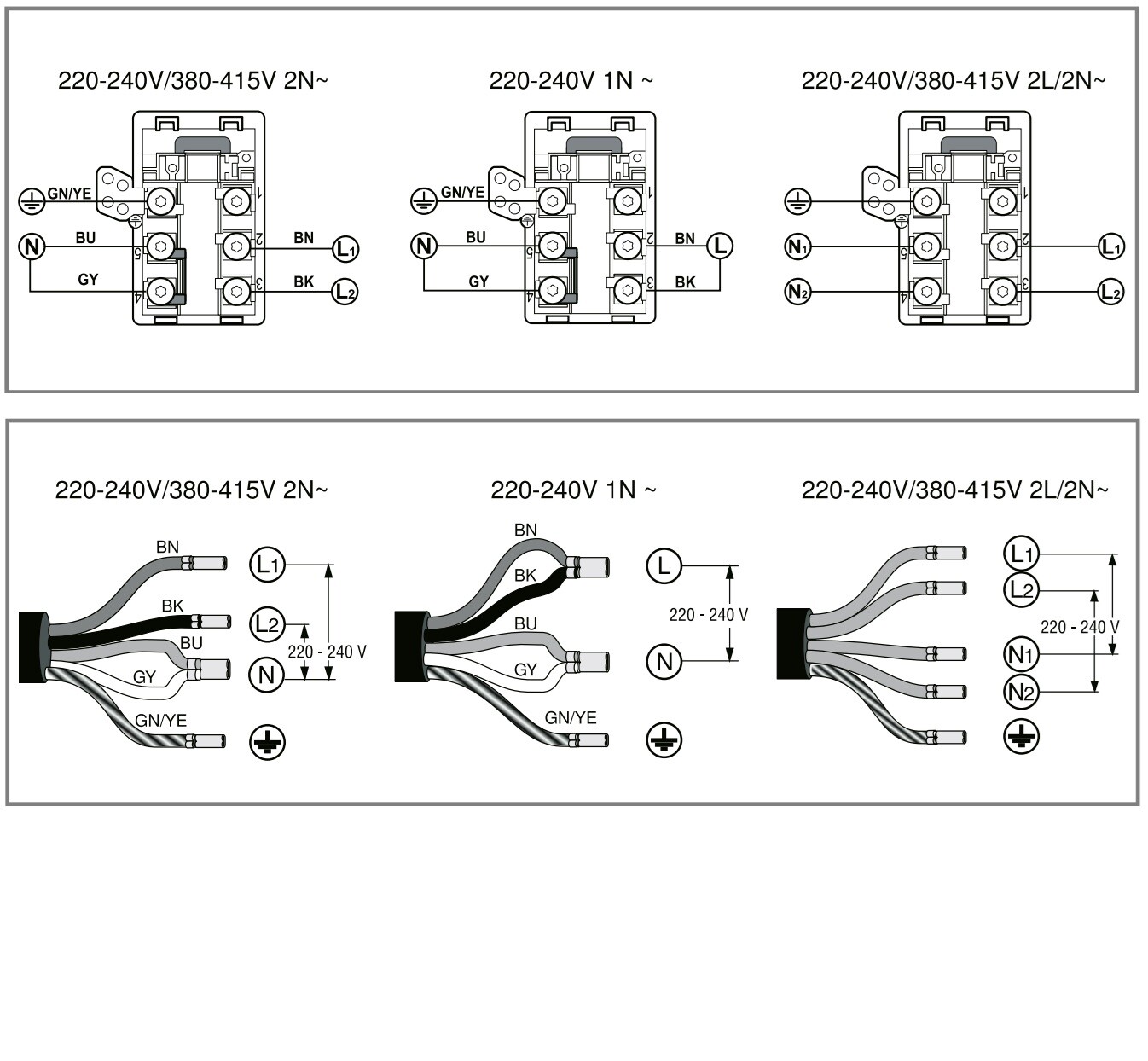 Vår induktionshäll har gått sönder. Köpt en ny nu. Båda är av märket Siemens och de har identiska kopplingsscheman när man ser till 2N~. När jag kollar på gamla hällen så ser det ut som att gråa ledaren ej är kopplad i hällen eller i dosan. Kopplingsschemat som jag förstår det rekommenderar att man byglar 4+5 i hällen och sen ansluter dem tillsammans i dosan.