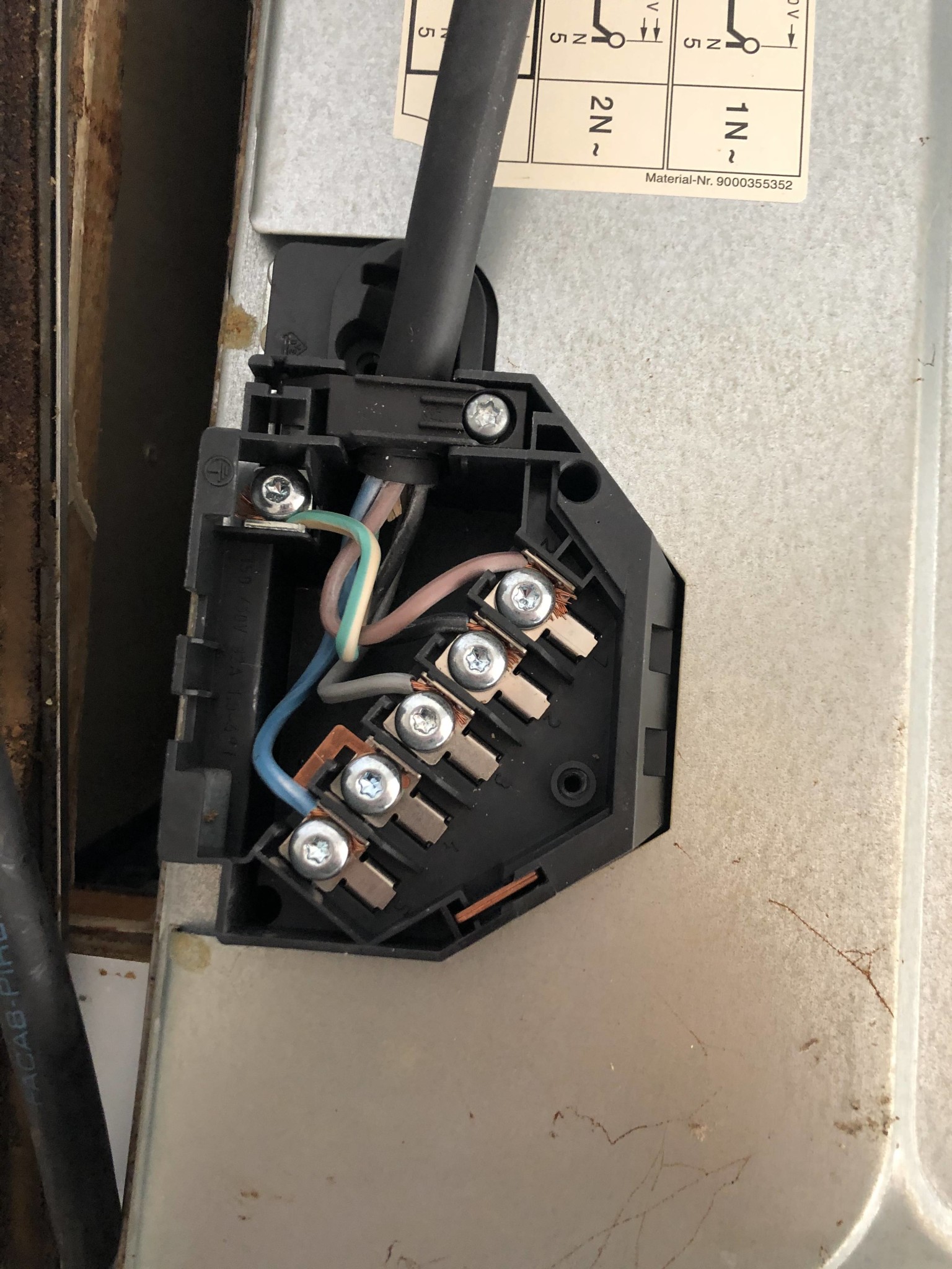 Jag har fått en gammal induktionshäll som jag skulle vilja testa istället för vår nuvarande häll då den är rätt dålig. I och med att jag kanske vill byta tillbaka då den jag fått har några år på nacken så vill jag inte dra dit elektrikern. Efter att ha läst här på forumet inser jag dock att det inte alltid är helt enkelt att koppla in en häll så jag tänkte därför kolla här om någon här kan hur jag ska göra, annars får jag kanske ta dit elektrikern ändå. Bild 1 visar hur nuvarande häll är inkopplad. Den är kopplad med 3-fas. Bild 2 visar den hällen jag vill koppla in är kopplad. Den är kopplad med ett perilexuttag eller liknande. Problemet är att jag behöver koppla in den direkt med den 3-fas kabeln jag har och kan därför troligen (?) inte koppla likadant som den var kopplad tidigare. Dessutom är det lite olika färg på kablarna (två svarta vs. en svart och en grå). Bild 3 visar instruktionerna på hur den jag vill koppla in kan kopplas. Så hur ska jag koppla in hällen på bild 2 och 3 med 3-fas kabeln som är på bild 1?