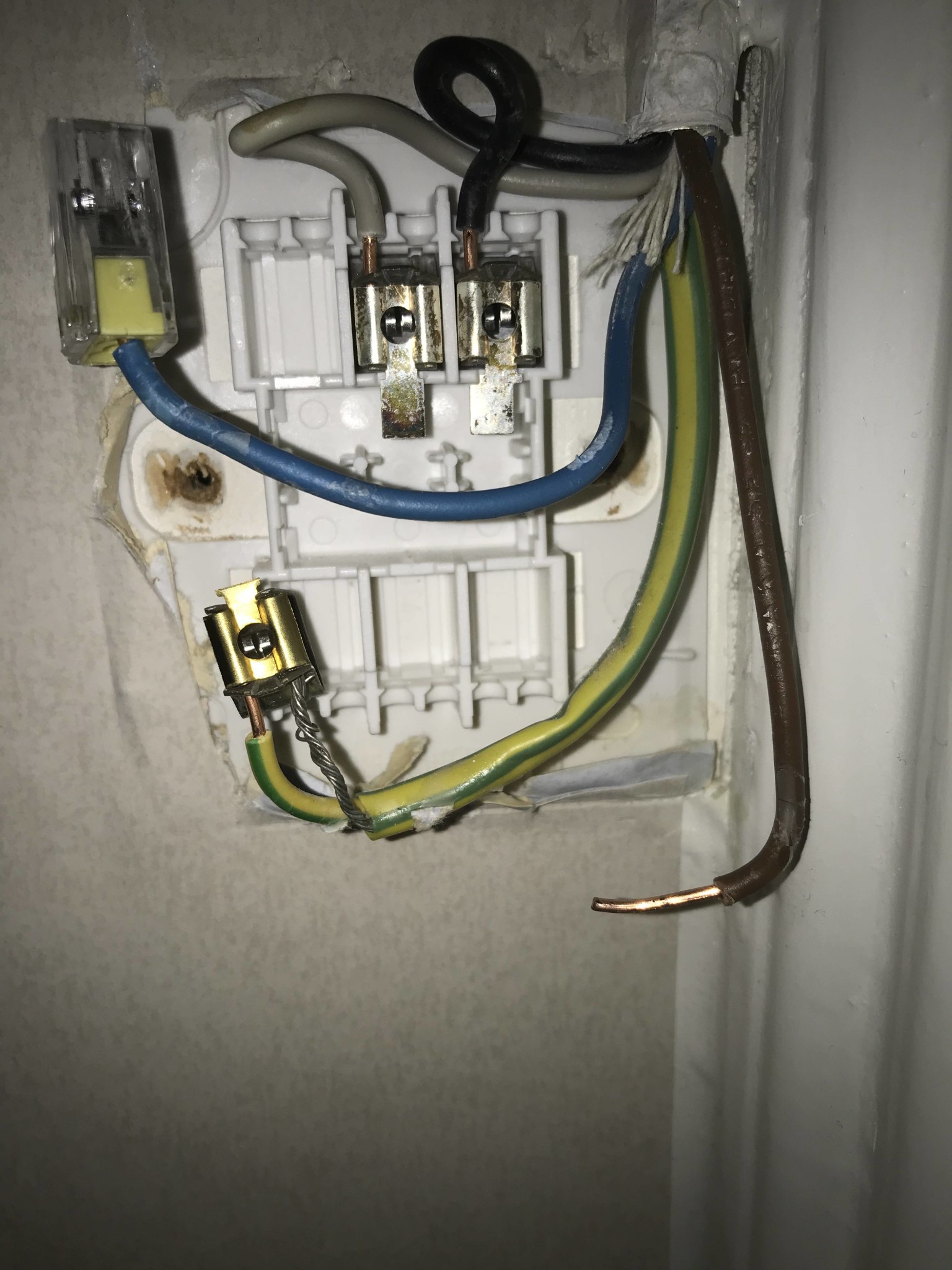 Tack för ytterligare support. Hur strömmen bröts via jordkabeln kan ju mycket väl vara omedveten kortslutning dom du nämnde. Inget hände andra gången jag försökte. Jordkabelns inre kabel i koppar gick mycket enkelt att få in i Wagon. Men de många småtrådarna i grå metal som kommer från samma jordkabel är svåra att få in i det andra hålet på Wago klämman. Den är för mjuk att få helt in och ligger bara mot metallen i själva klämman. Men jag ska ta fram lödkolven för att göra trådbunten lite stabilare.