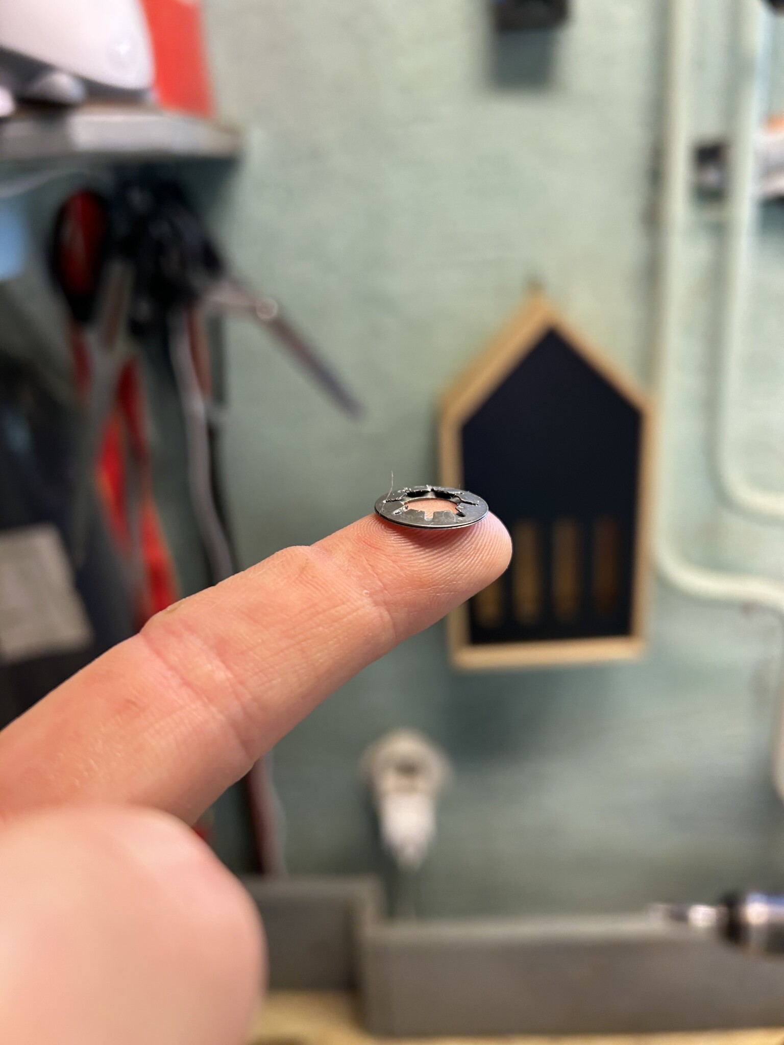 Har för mig att på min satt det två av dessa taggbrickor och de satt med taggarna mot varandra, typ ett X sett från sidan.