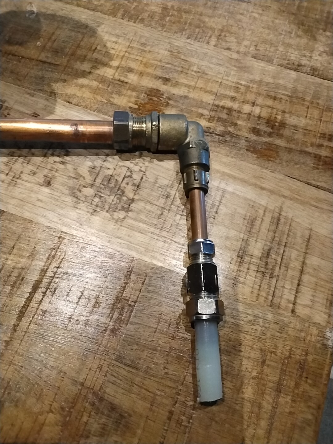 Har nu bytt ut vattenposten till en ny identisk Oras (med 15 mm koppling). Av nån anledning (man tager vad man haver?) var den gamla kopplad med ett kort 12mm kopparrör mellan pex och utkastare så ville undvika extra kopplingsdelar och göra det "rätt", dvs med en 15/15mm kulventil och ett kort 15mm kopparrör som passar direkt i utkastaren.