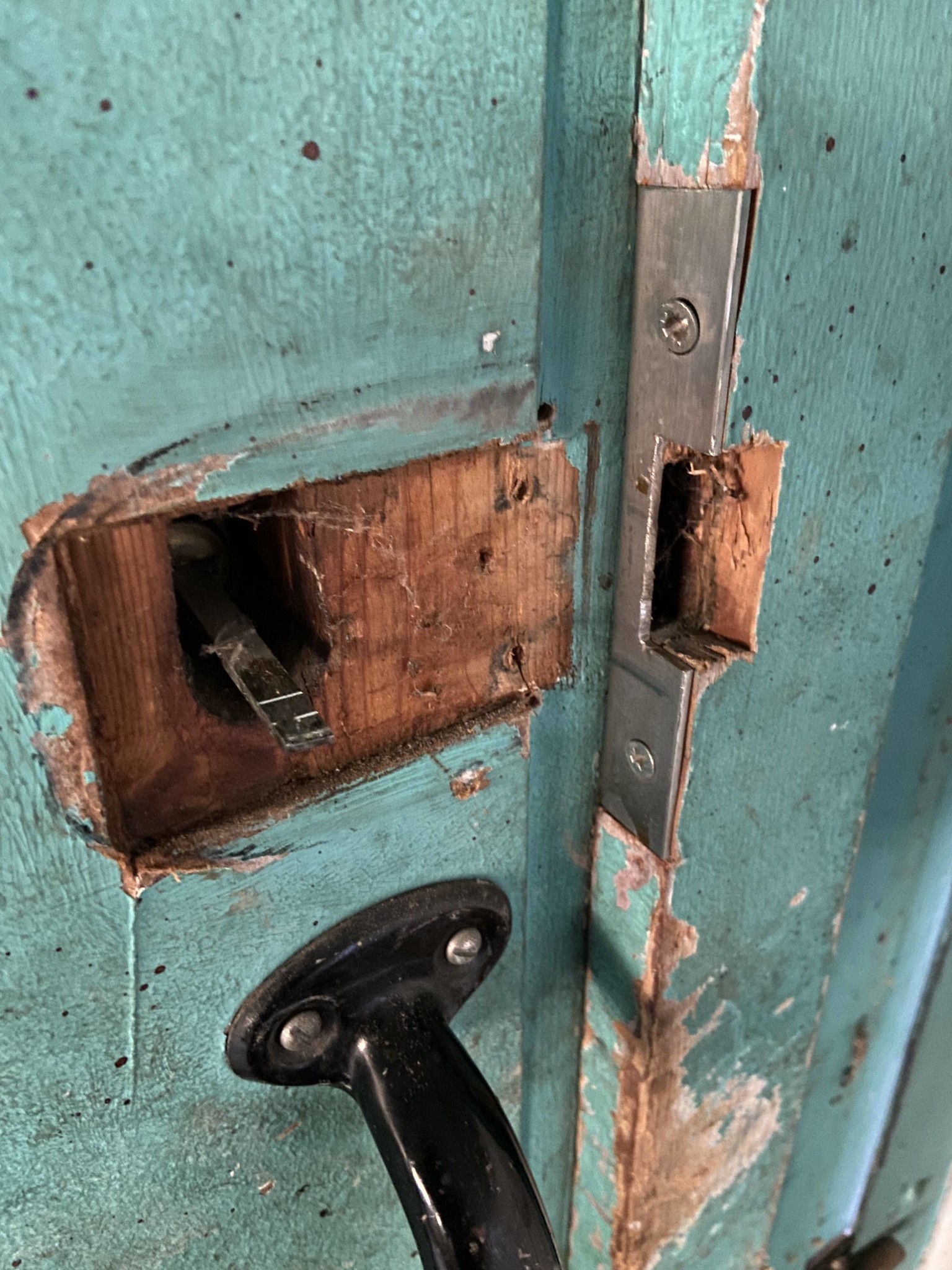 Det andra (nya problemet) är att själva låshuset har gått sönder, själva låsvredet på insidan har trillat bort.