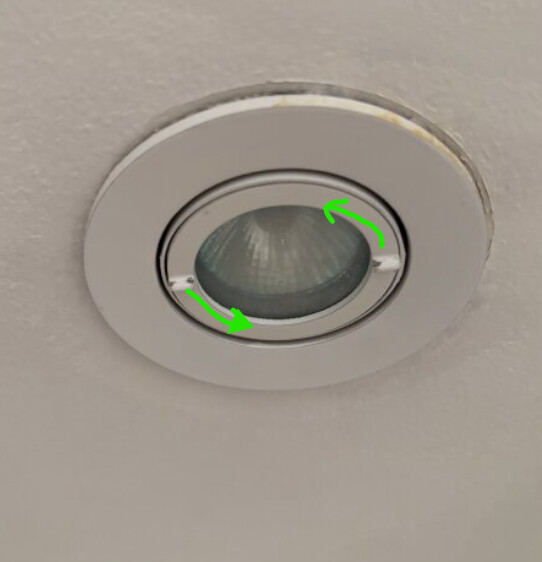 I mitt badrum har jag två spotlights. De fanns där när jag flyttade in, alltså är det inte jag som installerat dem.