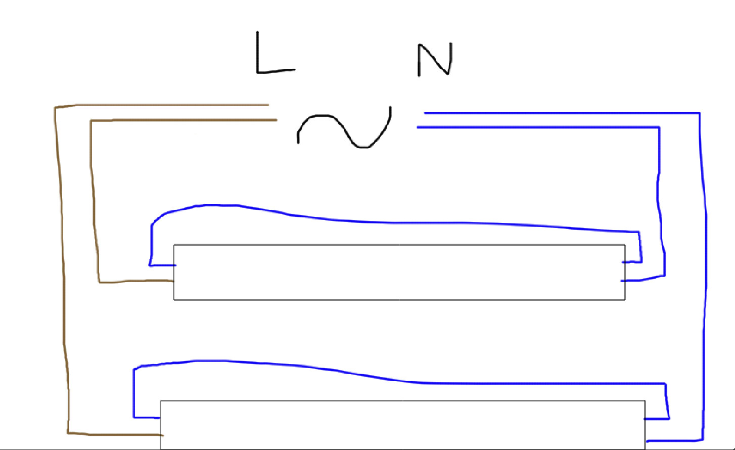 Tack! Jag kopplade som du skrev med en andra LED (köpte LEDvance och inte Philips) och det blev så här. Det funkar utmärkt!U Ursidae skrev:Ett Led-lysrör har belysnings-mojen bara i ena änden. I andra änden är den kortsluten. Det gör att det fungerar i traditionella armaturer med drossel och glimtändare.