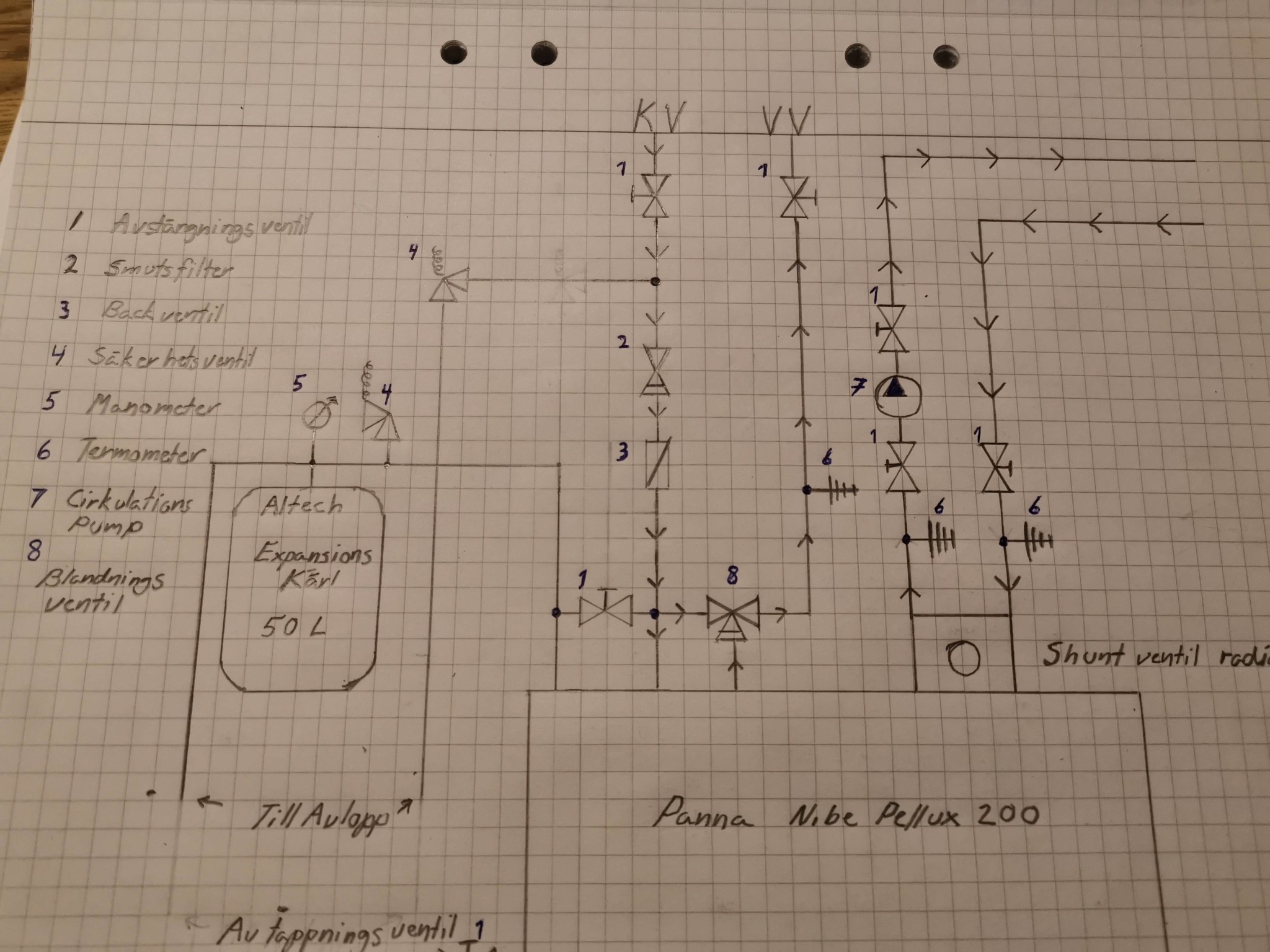 Expansionskärlet på 50 liter är stort för en normal villa med pelletspanna som inte går mot acktank. Det är förvisso inget fel med lite stort kärl men dom blir dyrare och framför allt klumpigare att installera. 10% av systemvolymen brukar tumregeln säga så om du inte har en herrgård kan du nog ha ett mindre kärl än 50 liter.