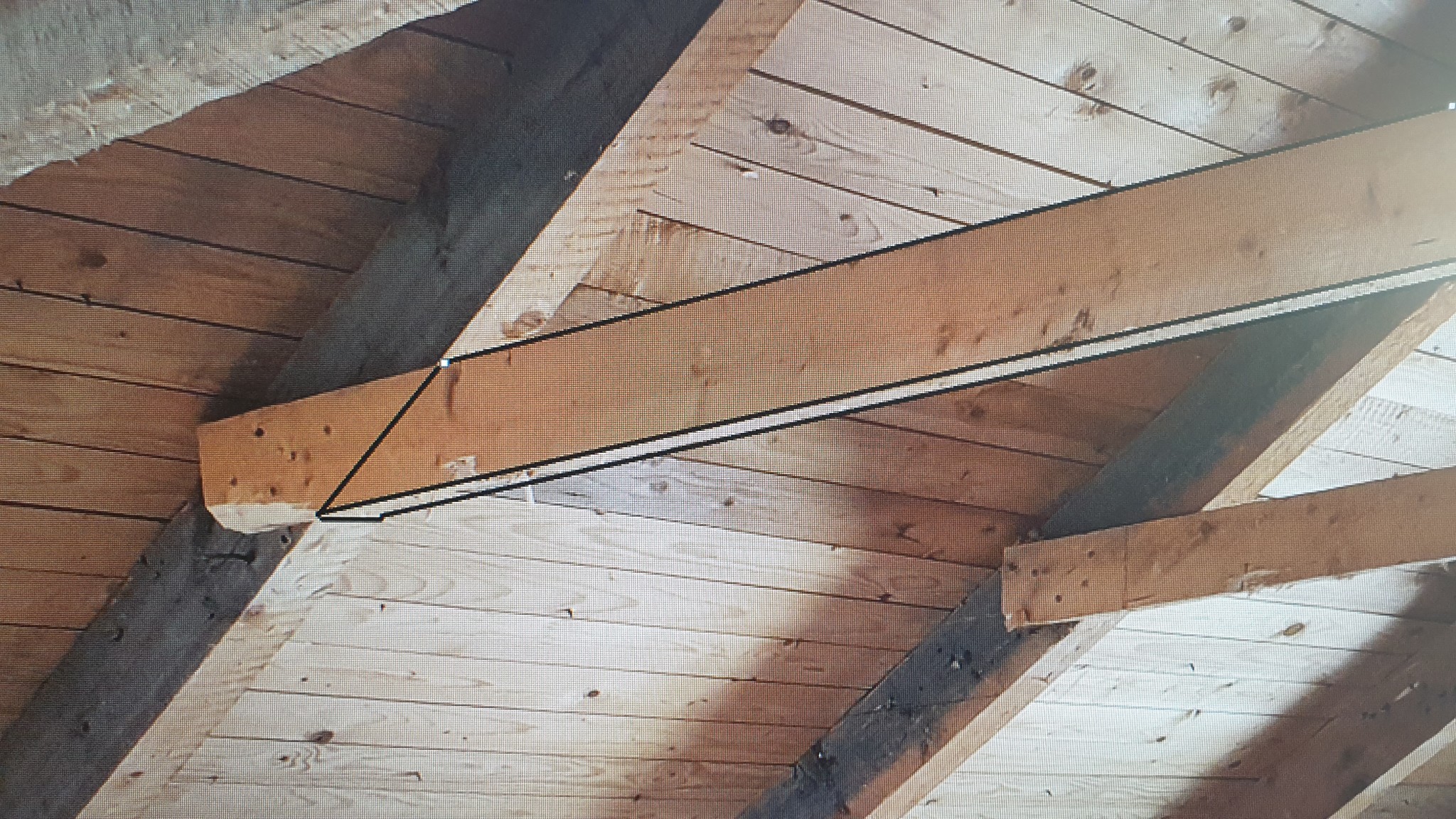 Visst kan man i det här läget säga att den har en funktion för takstolen men jag tror faktiskt de där är uppsatta i efterhand enbart för innertaket. De ser alldeles för taffliga ut för att ha varit med i takstolen från start. Särskilt då infästningen och avslut för i det flesta fall lägger man ju på så ändan följer taklutningen så man får maximalt att fästa i.