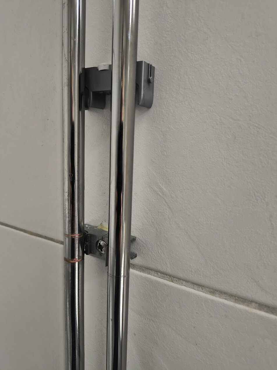 Som synes på bilden har en rörhållare i duschen gett upp, och även det kromade överfallet var sprucket så jag skulle vilja byta till nytt.