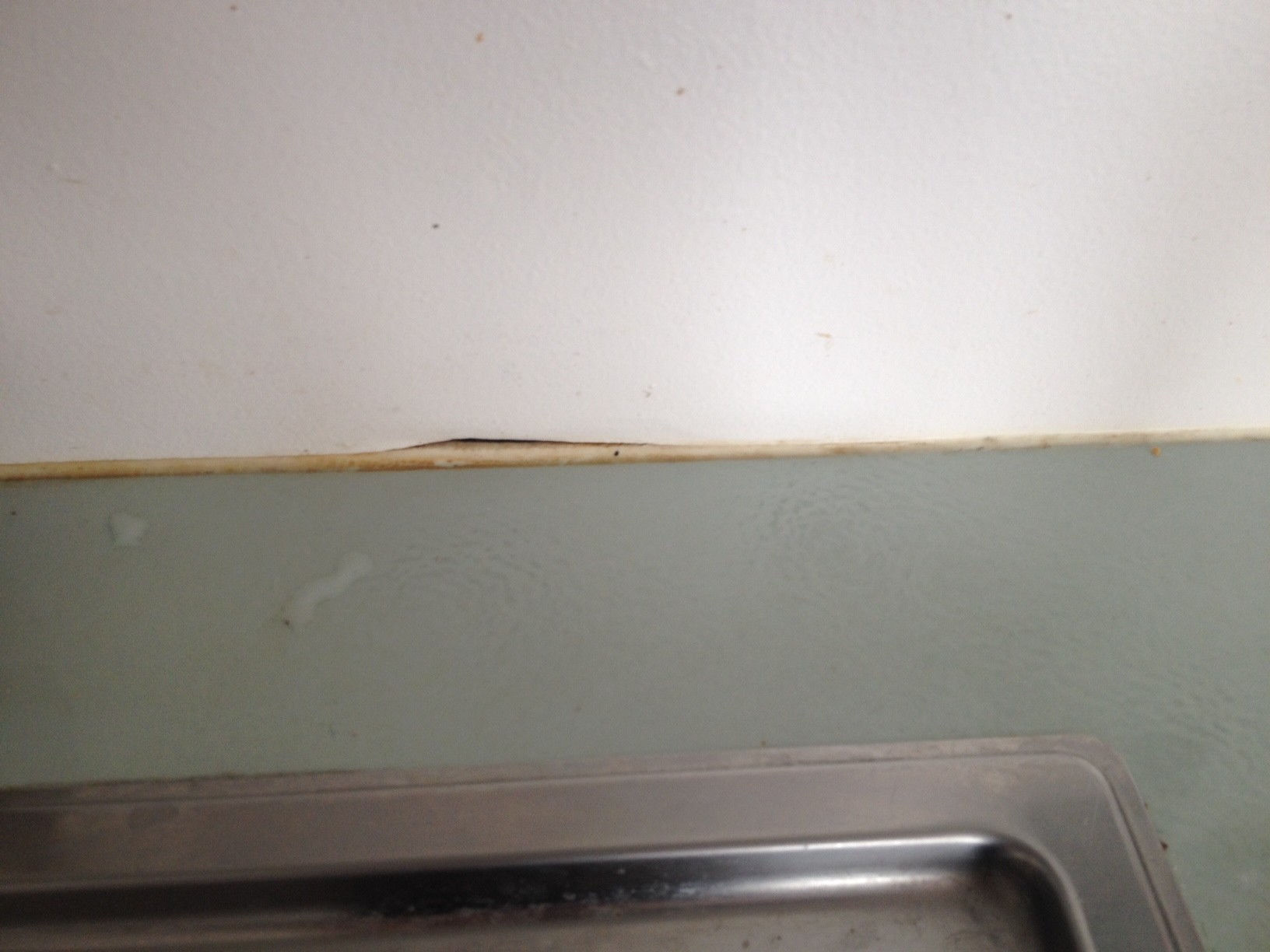 Silikonfogen i köket har börjat släppa och gipsskivan (har ej kakel) har böjt in sig lite grann, se bild. Hade en kille här idag och tittade på det och han tyckte att vi skulle överväga att lägga kakel i köket. Han trodde att det skulle bli fult att foga om silikonet eftersom det skulle krävas så bred fog för att täcka glipan.