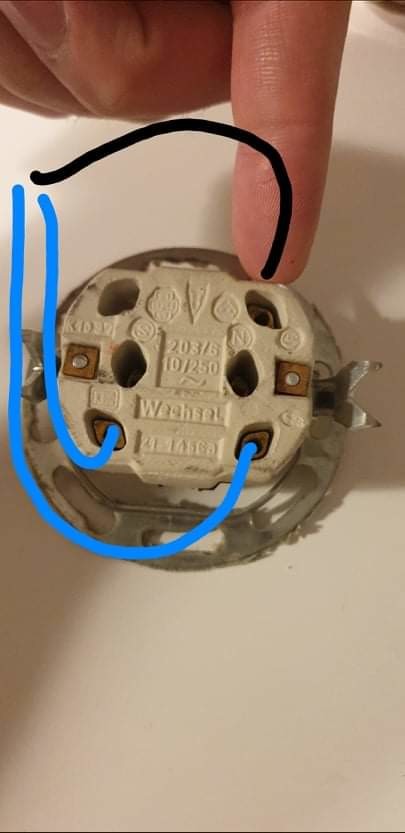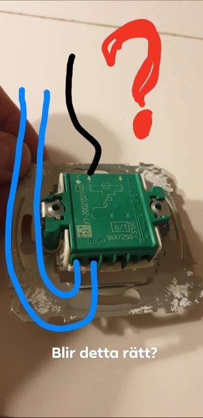 Din föreslagna koppling är fel. De blå ledarna är mellantrådar och den svarta är antingen fas eller tändtråd. Du kopplar svart till L och de blå till varsin pil.