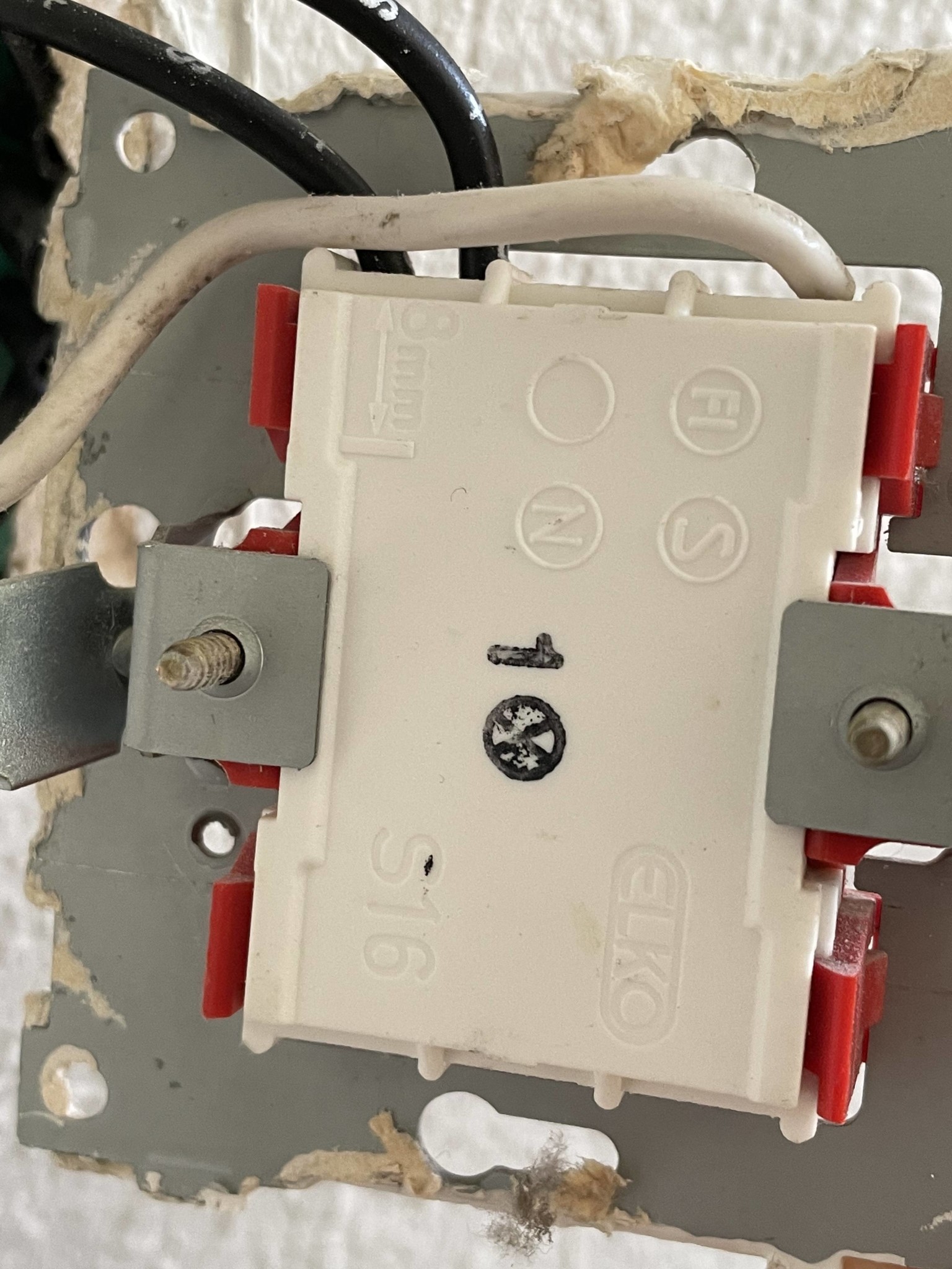 Monterat idag sitter en Elko-strömbrytare. Jag har inhandlat Schneider strömbrytare. Lägger med 4 bilder.