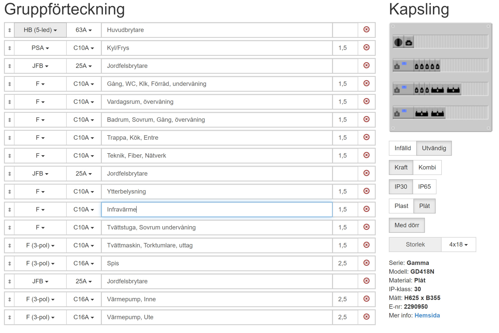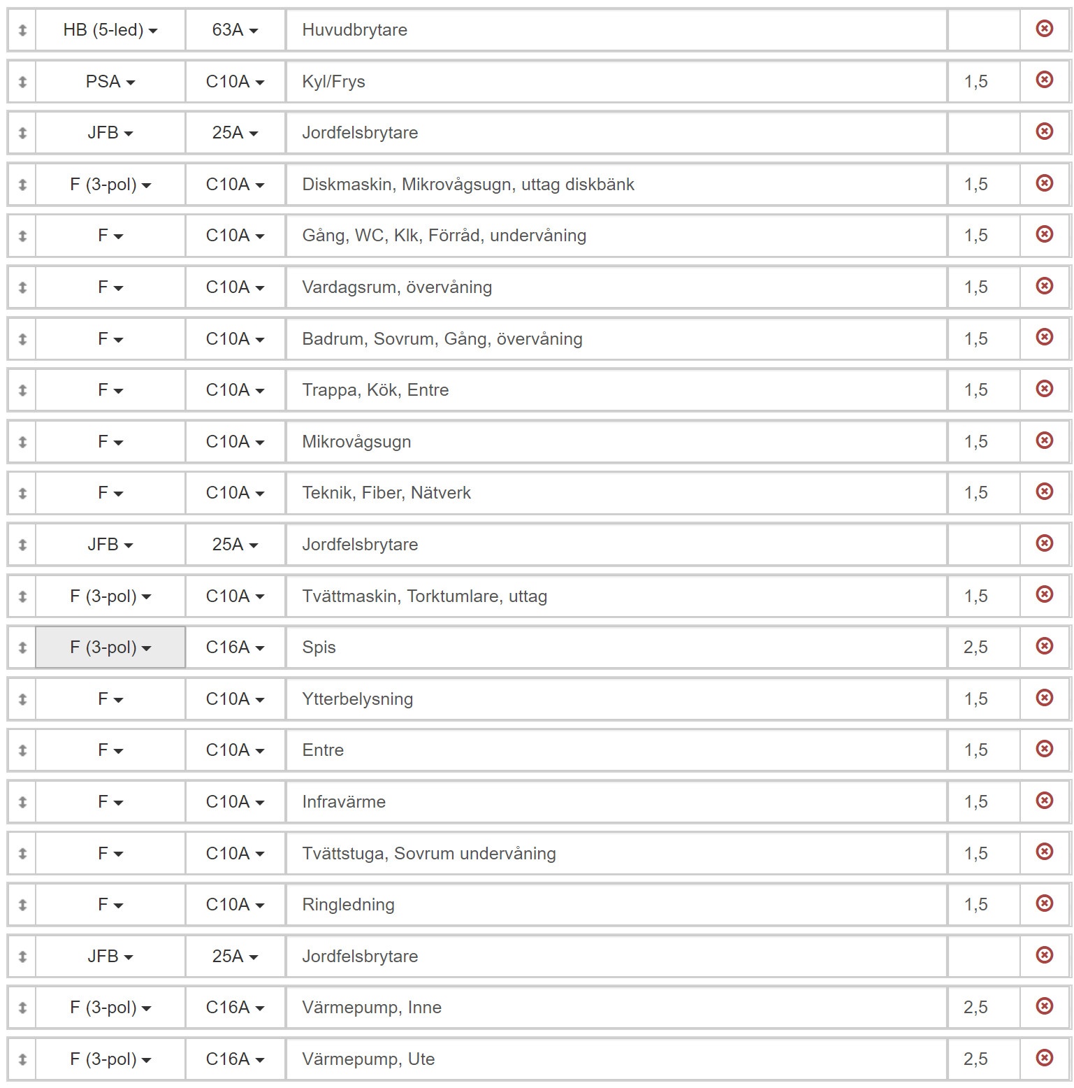 Tänker byta elcentral då vi kommer ta bort en undercentral för direktverkande el via takvärme och lika bra att då byta allt. Så här ser det ut idag: